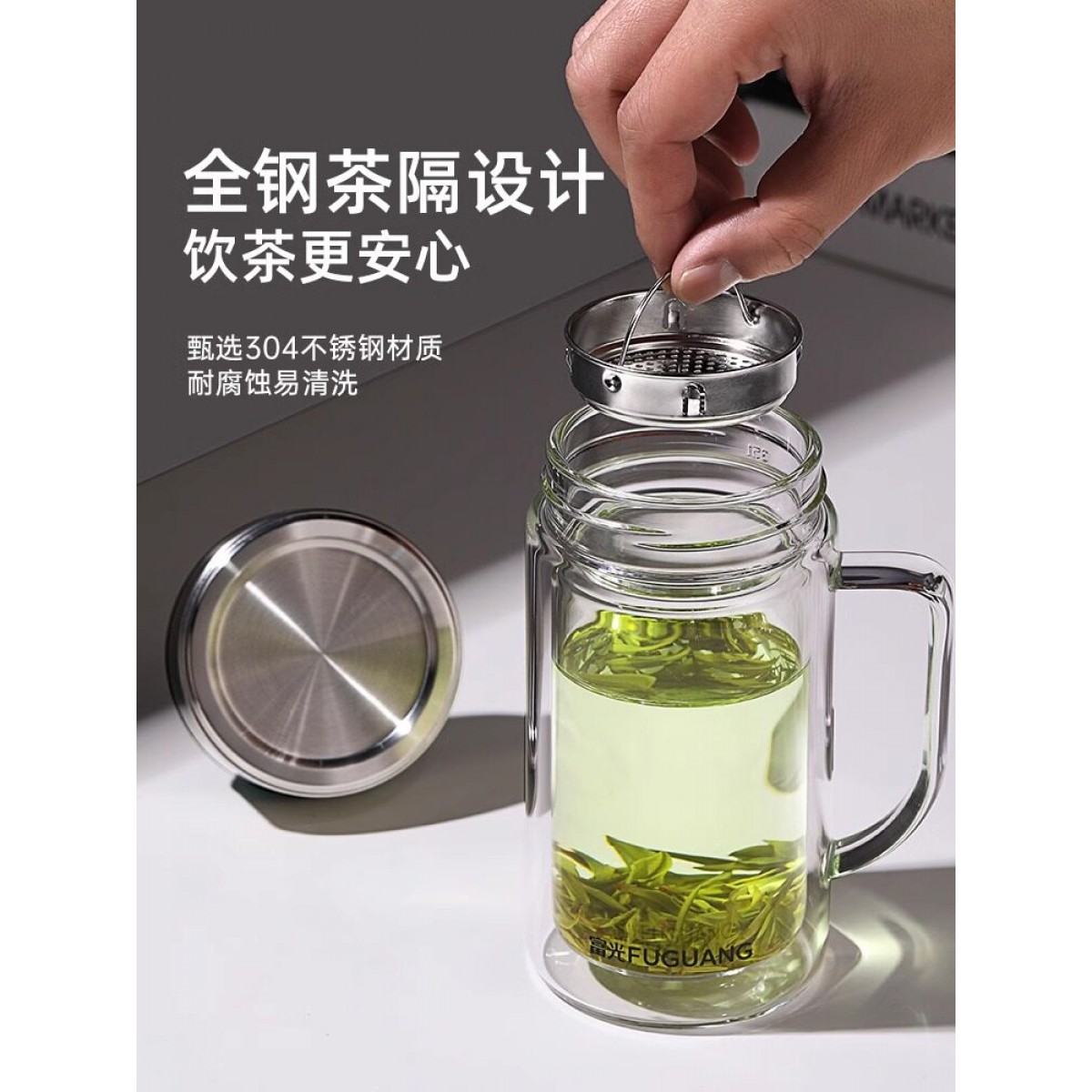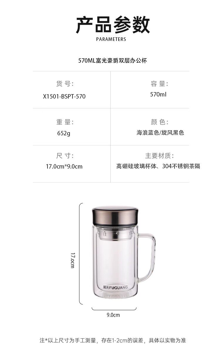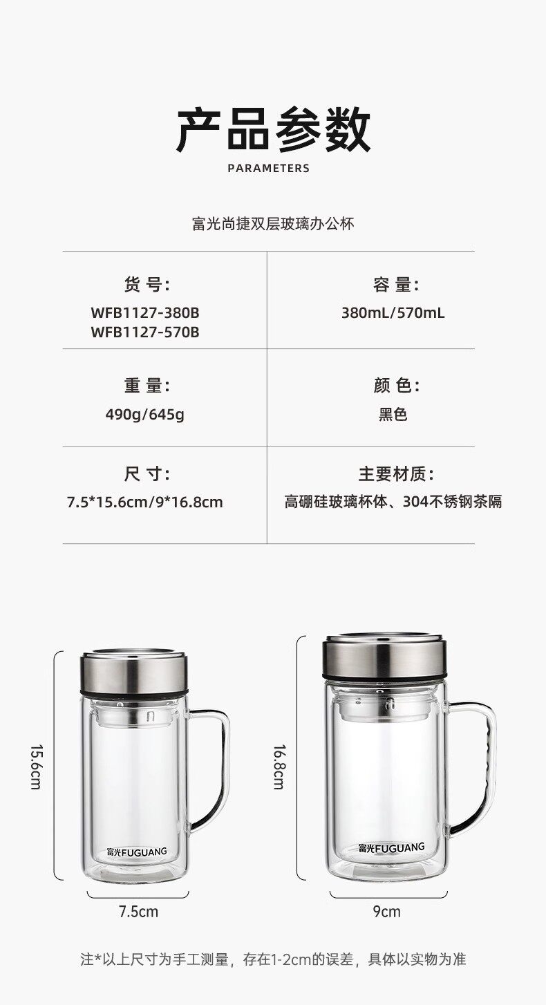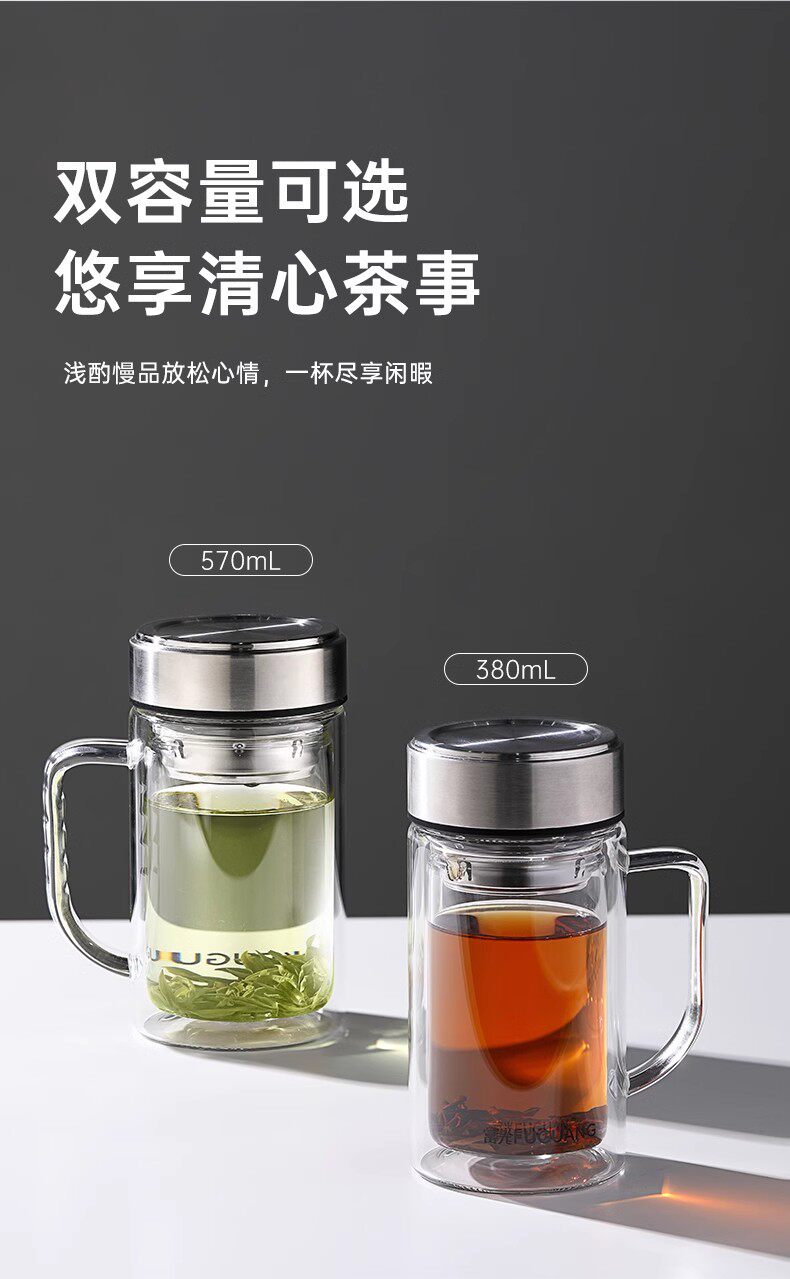 商品名称:富光 晖宇双层玻璃办公杯(独家包销款)380ml G2424-SH-380B