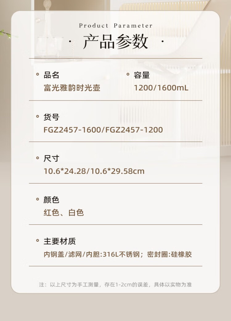 商品名称:富光 雅韵时光壶(流通款)1600ml FGZ2457-1600