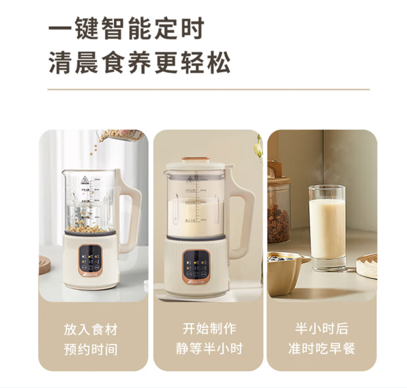 ◁创新外观设计,高端大气上档次 ◁1000ML大容量,足够更多人份量,节省空间和时间 ◁一键触控,带预约功能