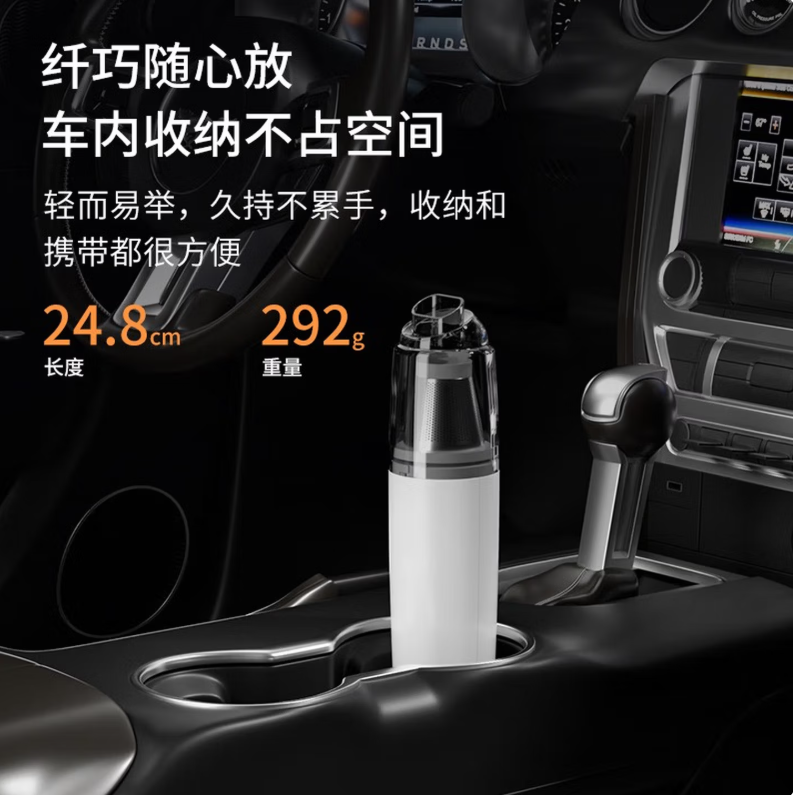 ◁无线除尘,可与手机移动电源数据线通用 ◁多功能吸头,快速倒尘 ◁外形灵活小巧,家车两用 ◁一键启动,操作简单