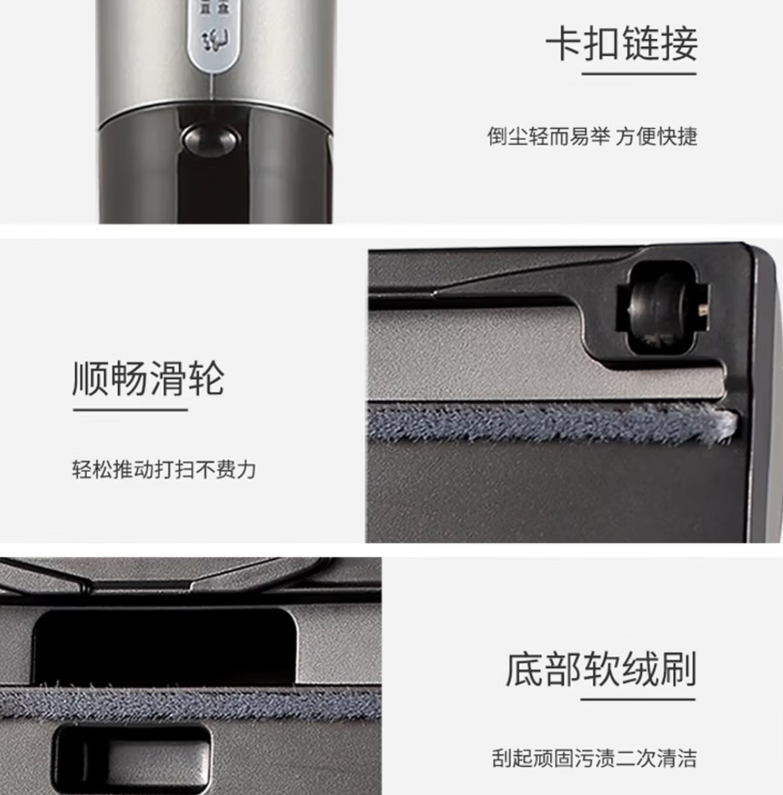 ◁外形美观大方、操作简单、工作效率高,分离率 ◁上下、左右旋转,任意穿行家居底部 ◁可水洗过滤组件,保持洁净,防堵无味