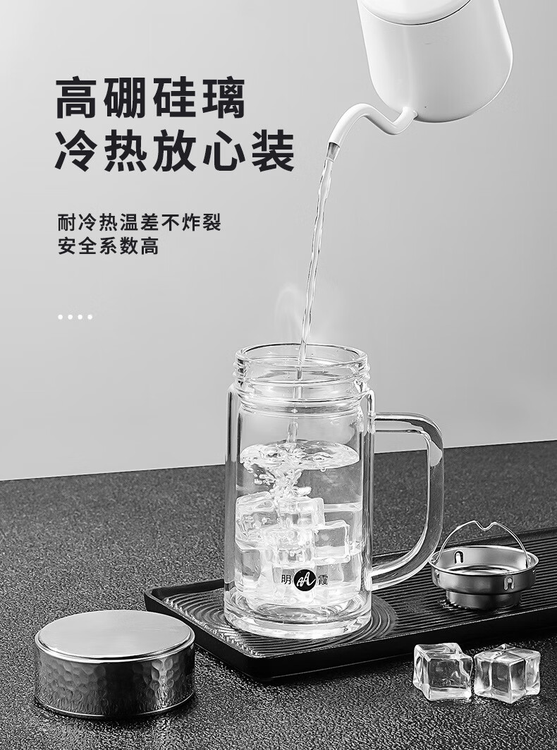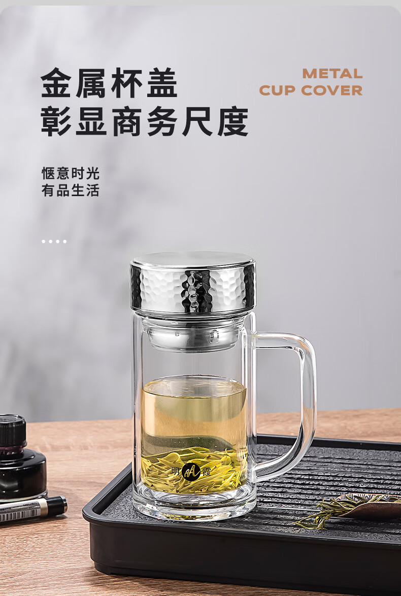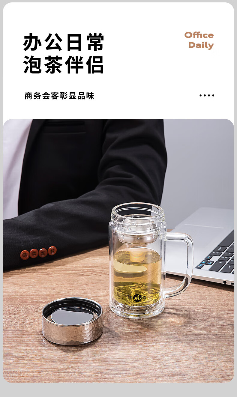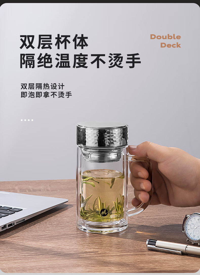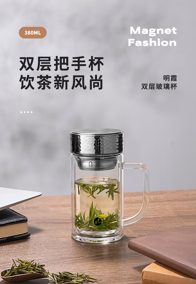 明霞 双层办公玻璃杯 380ml MX3581-ST380