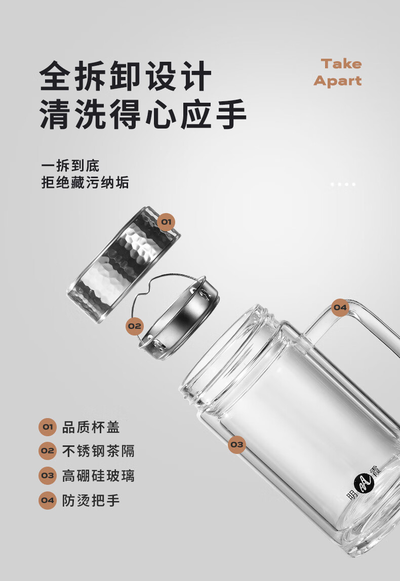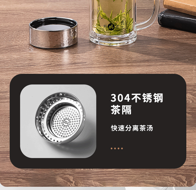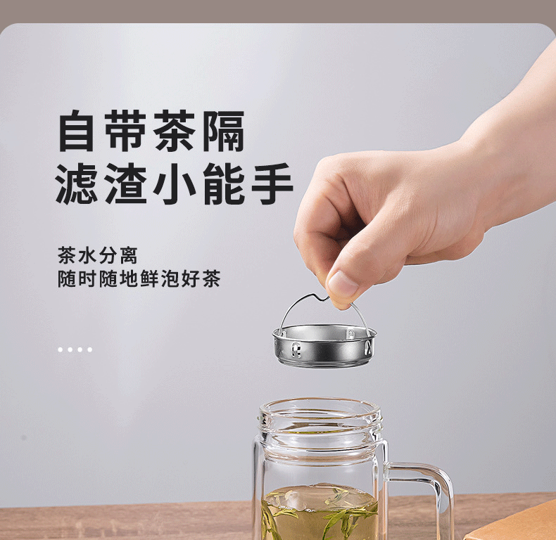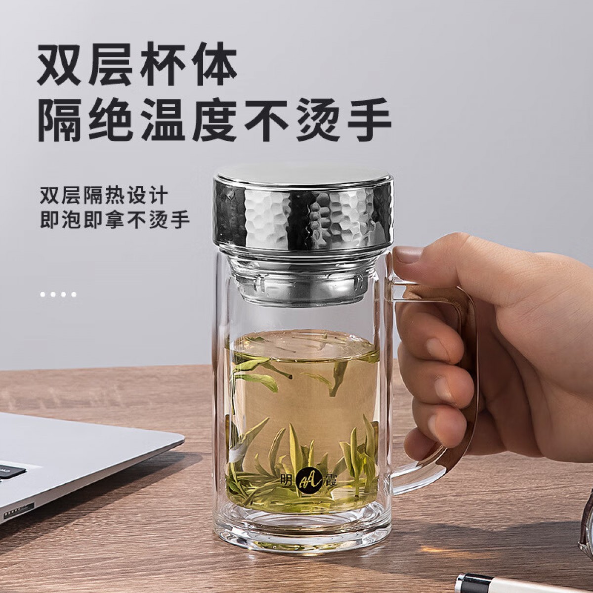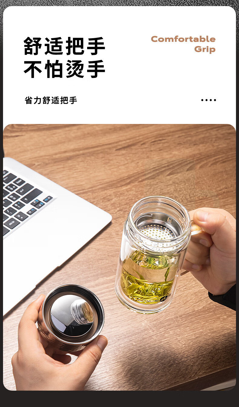明霞 双层办公玻璃杯 380ml MX3581-ST380