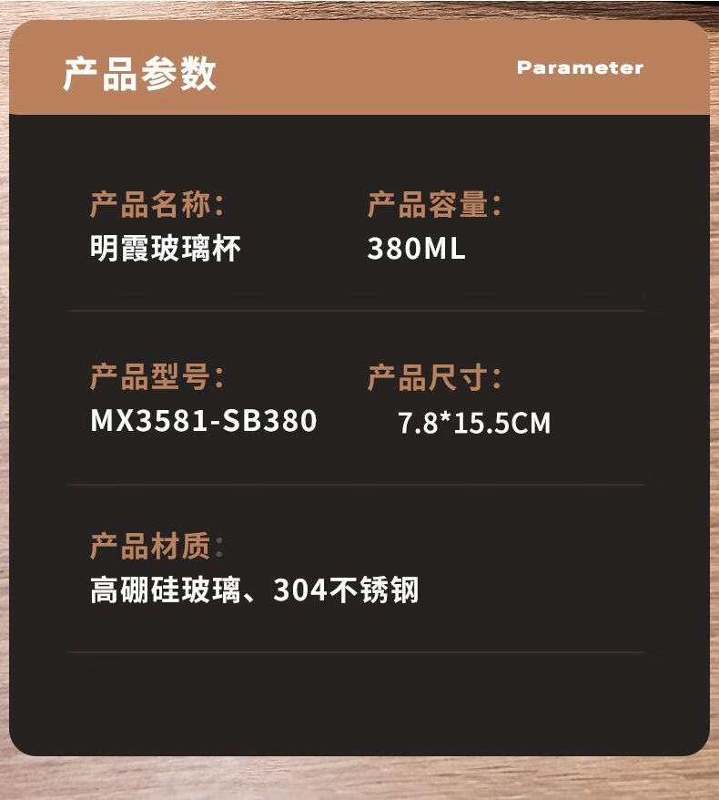 商品名称:明霞 双层办公玻璃杯 380ml MX3581-ST380