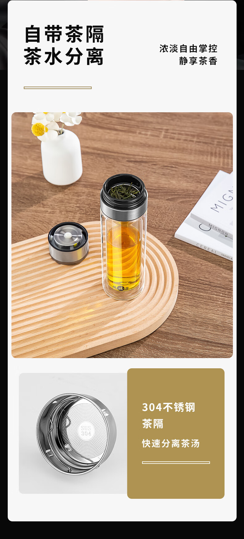明霞 速开双层玻璃杯 400ml MX3575-ST400