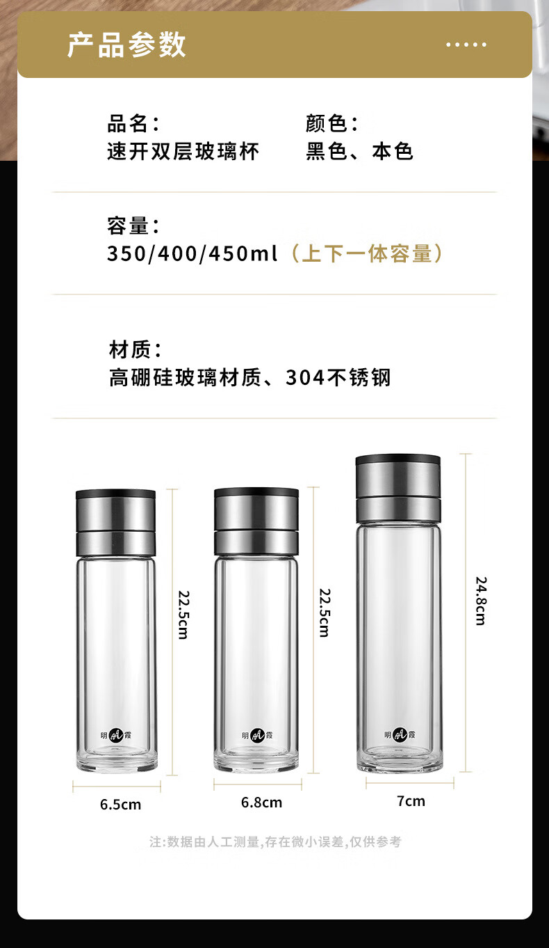 商品名称:明霞 速开双层玻璃杯 400ml MX3575-ST400