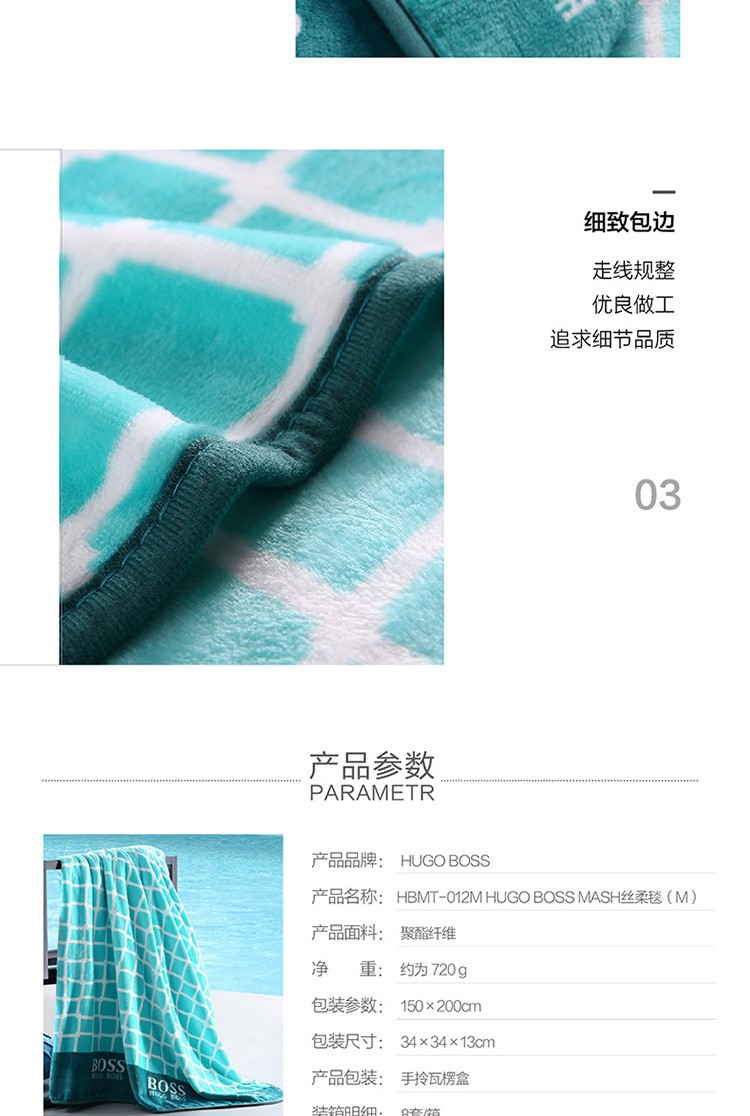 商品名称:HUGO BOSS MASH丝柔毯(M) HBMT-012M 150×200cm