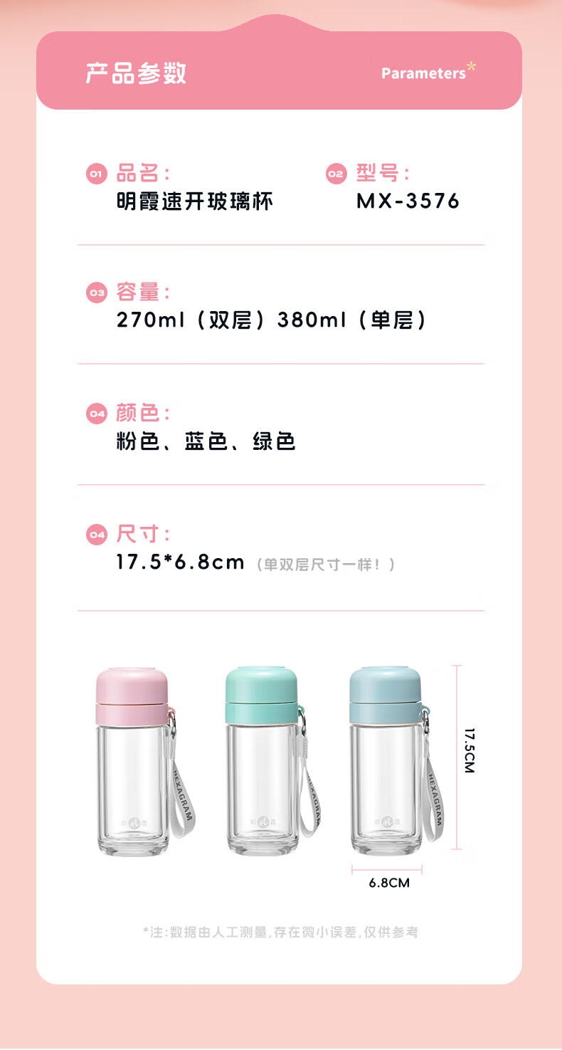 商品名称:明霞 速开玻璃杯 270ml MX3576-ST270