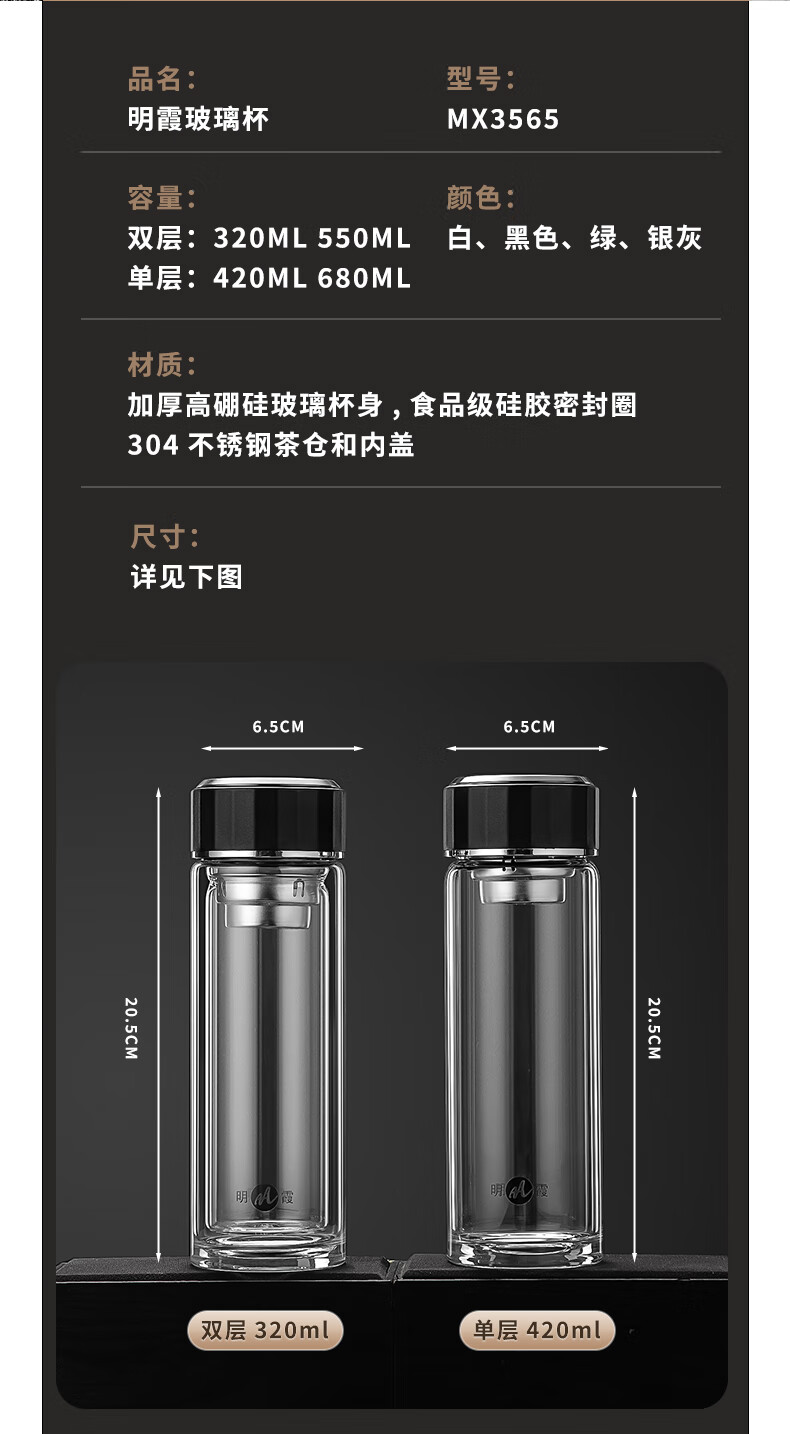商品名称:明霞 双层玻璃杯 360ml MX3565-ST360