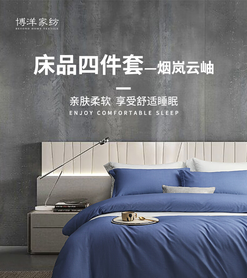 商品名称:博洋家纺 床品四件套-烟岚云岫 (被套:200*230cm 床单:230*240cm 枕套*2:48*74cm)