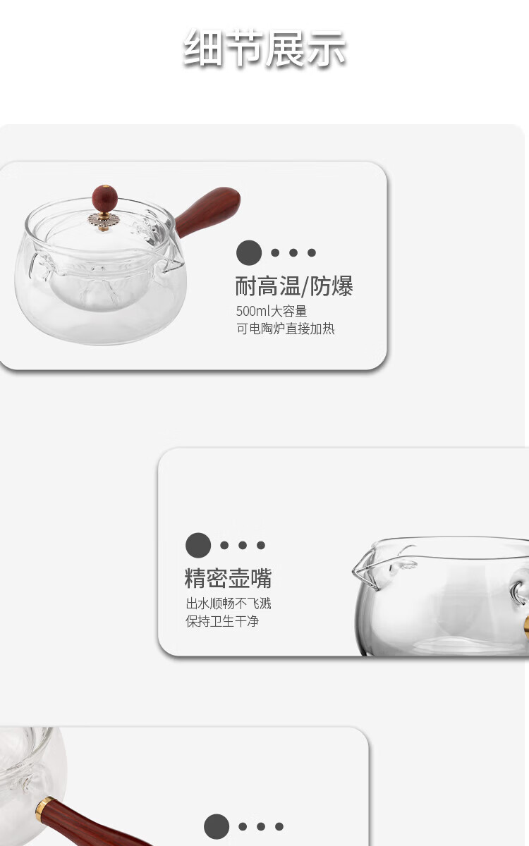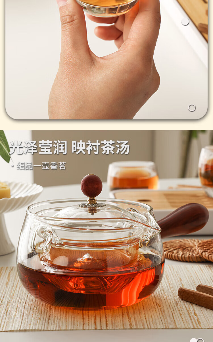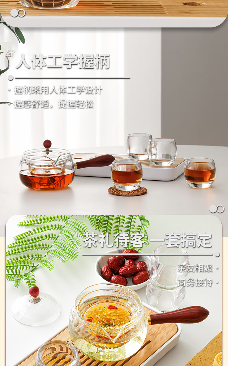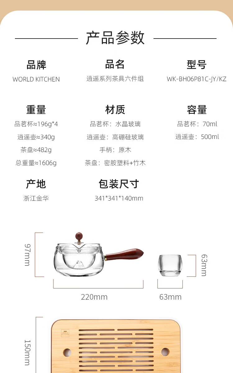 壶/杯身材质 :逍遥壶:高硼硅玻璃+原木 品茗杯:水晶玻璃