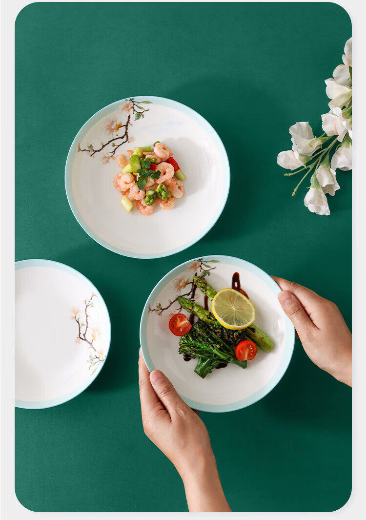 康宁 玉兰芬芳系列餐具12件组 (4.5寸碗*4+小汤勺*4+7寸深盘*2+8寸深盘*2)WK-CJ12T137C-JY/KZ