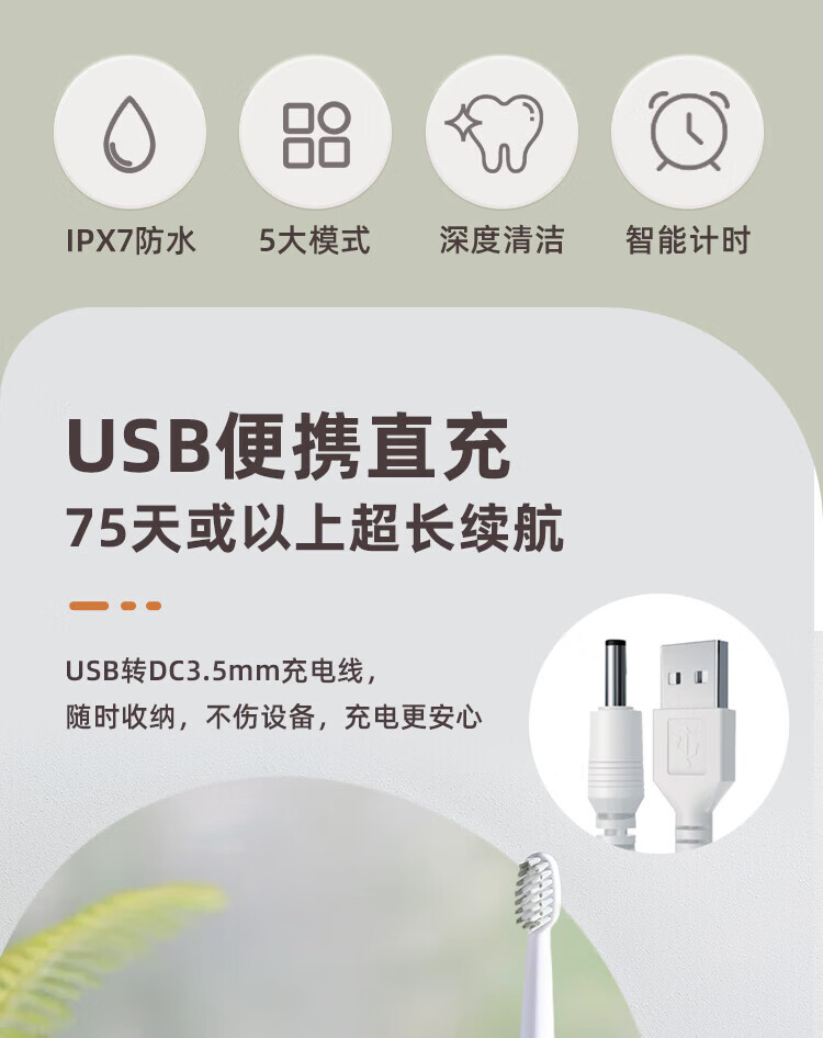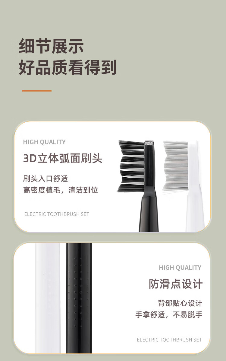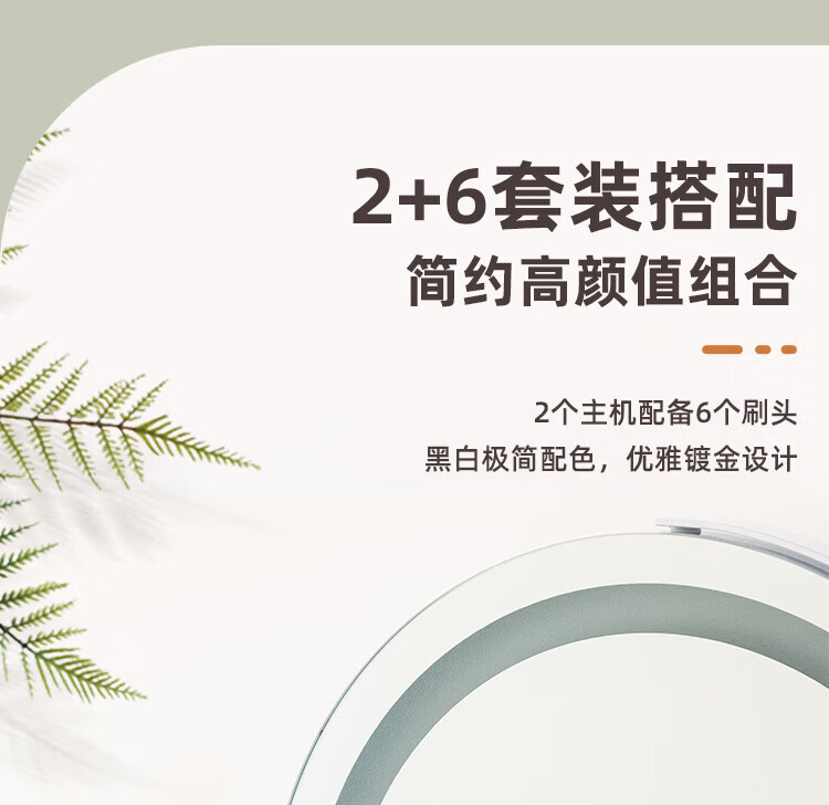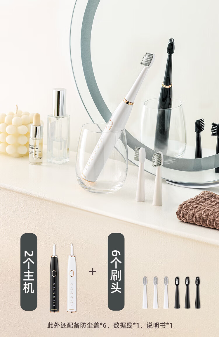 包装清单 :主机*2、刷头*6、防尘盖*6、数据线*1、说明书*1