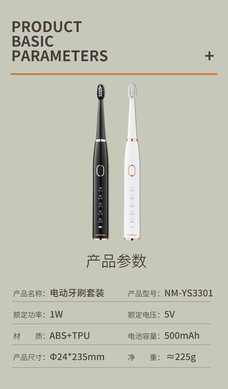 商品名称:北欧欧慕 电动牙刷套装 24*235mm NM-YS3301