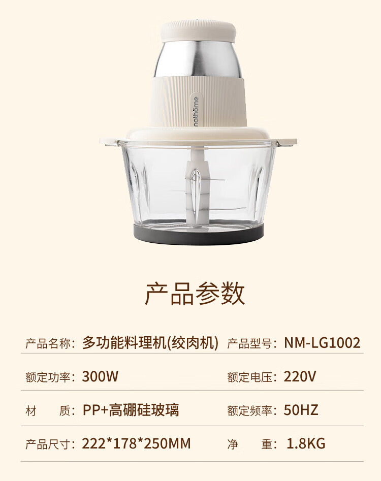 商品名称:北欧欧慕 多功能料理机(绞肉机)225*225*250mm NM-LG1002
