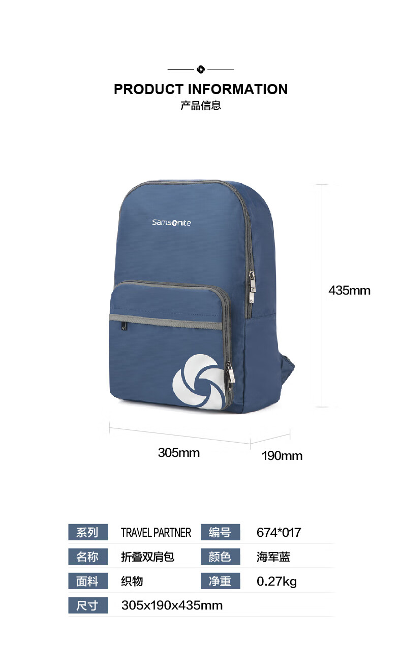 商品名称:新秀丽 Samsonite 双肩包海军蓝 674*41017