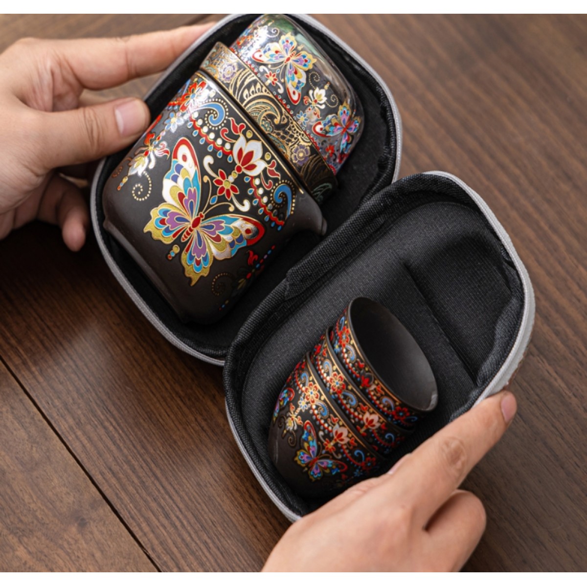 紫陶蝶韵旅行茶具 茶壶+茶杯+茶巾