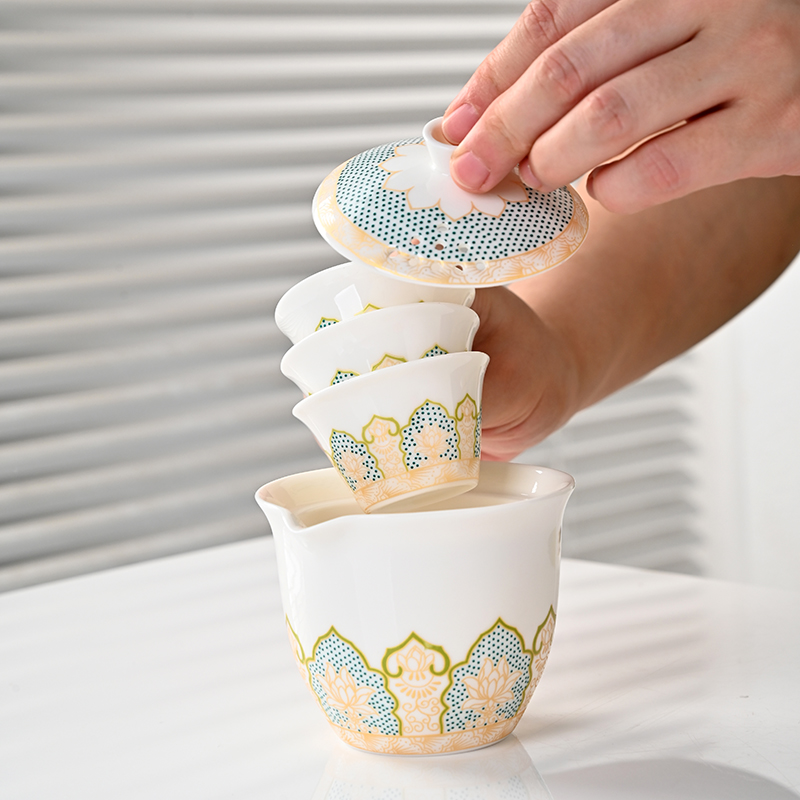 平安喜乐-羊脂玉 盖碗+茶杯