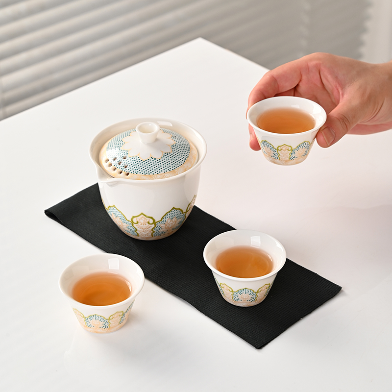 盖碗x1、茶杯x3、礼盒x1