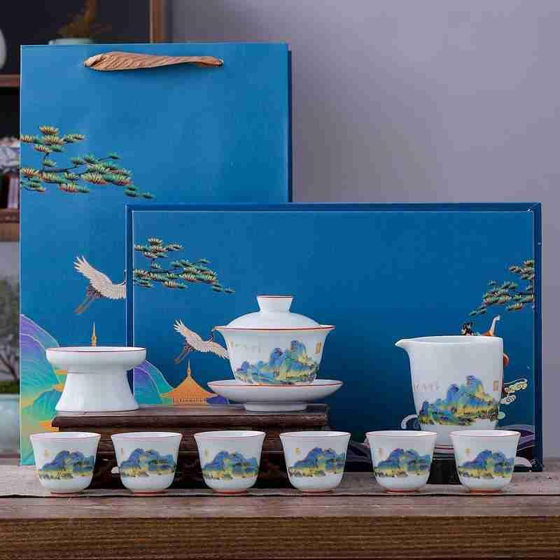 配置 :盖碗、杯*6(两款杯型)、公道、过滤组、礼盒(5款可选)