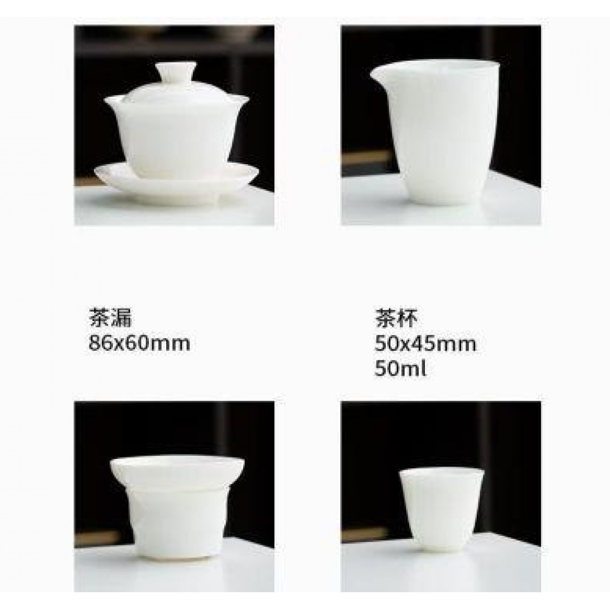 白瓷茶具套装 三才盖碗+公道+茶漏组+茶杯