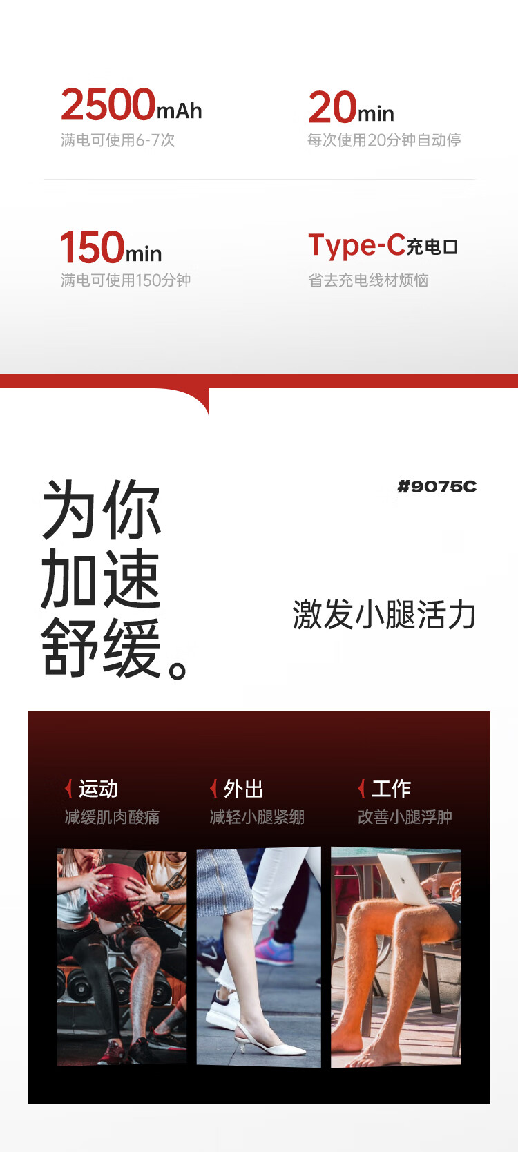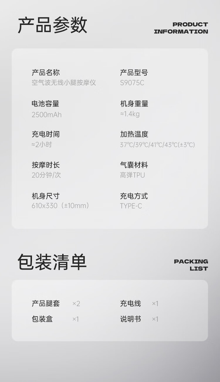 商品名称:喜来康 空气波无线小腿按摩仪 10W S9075C