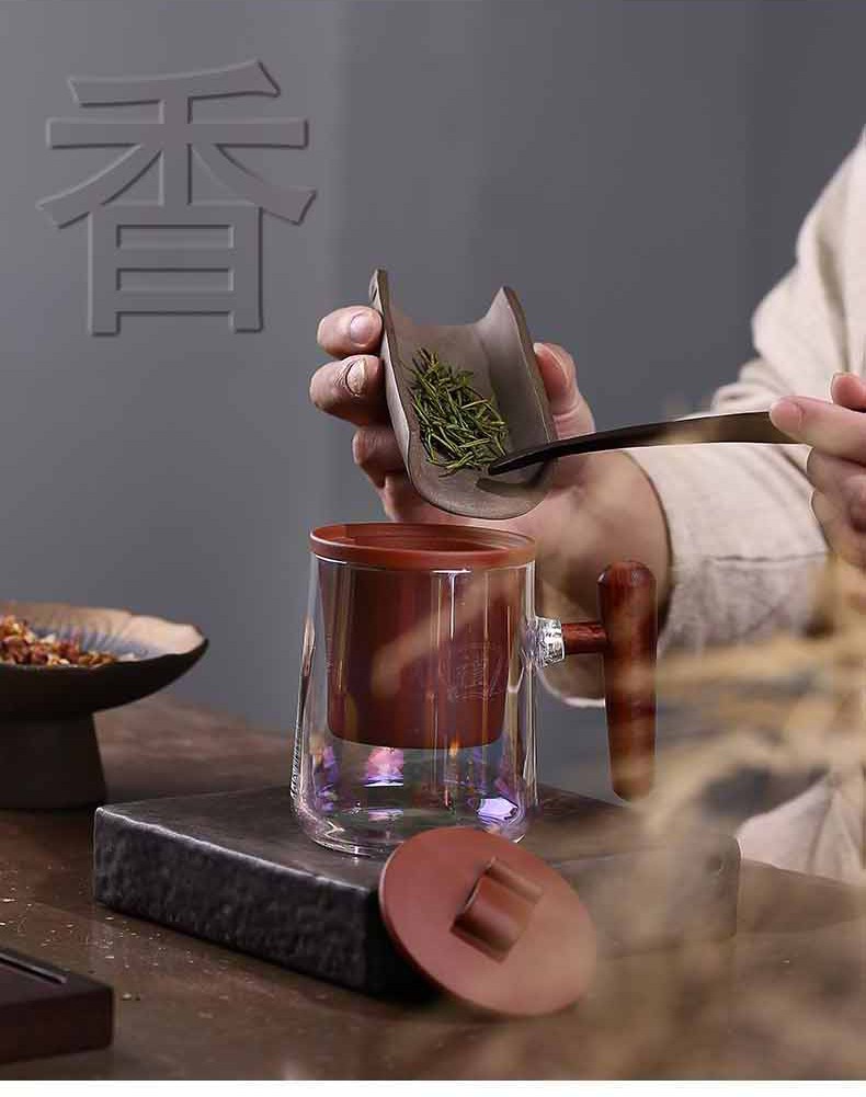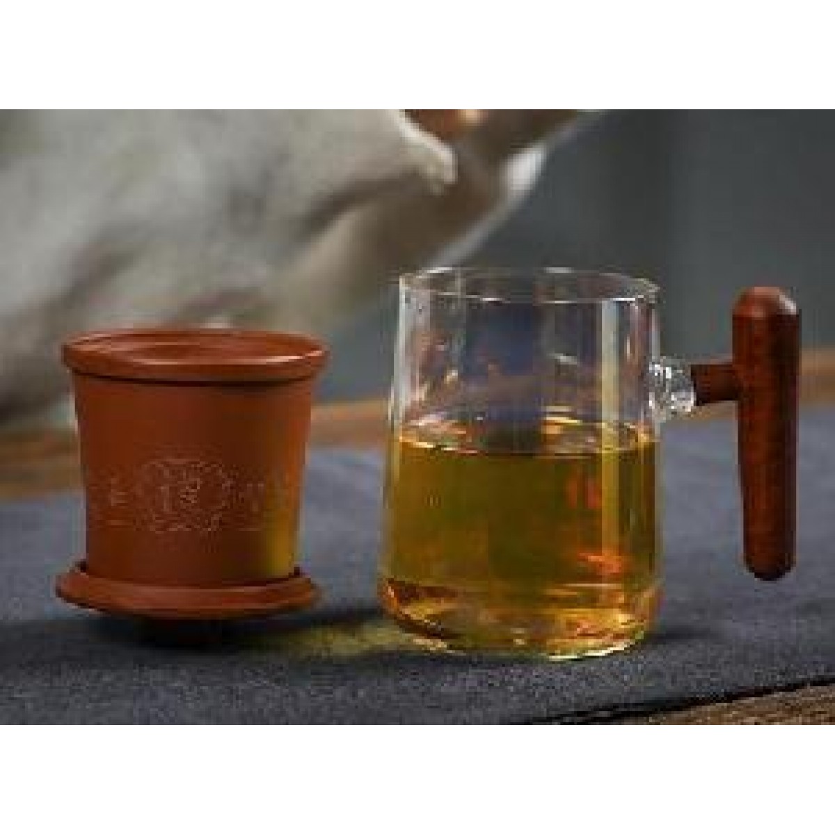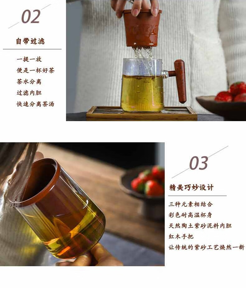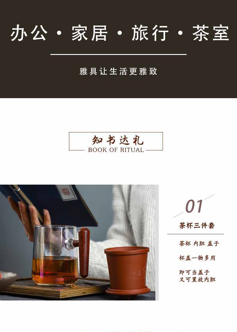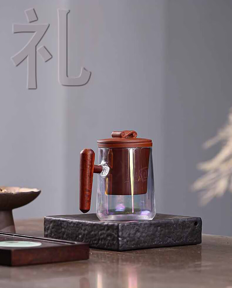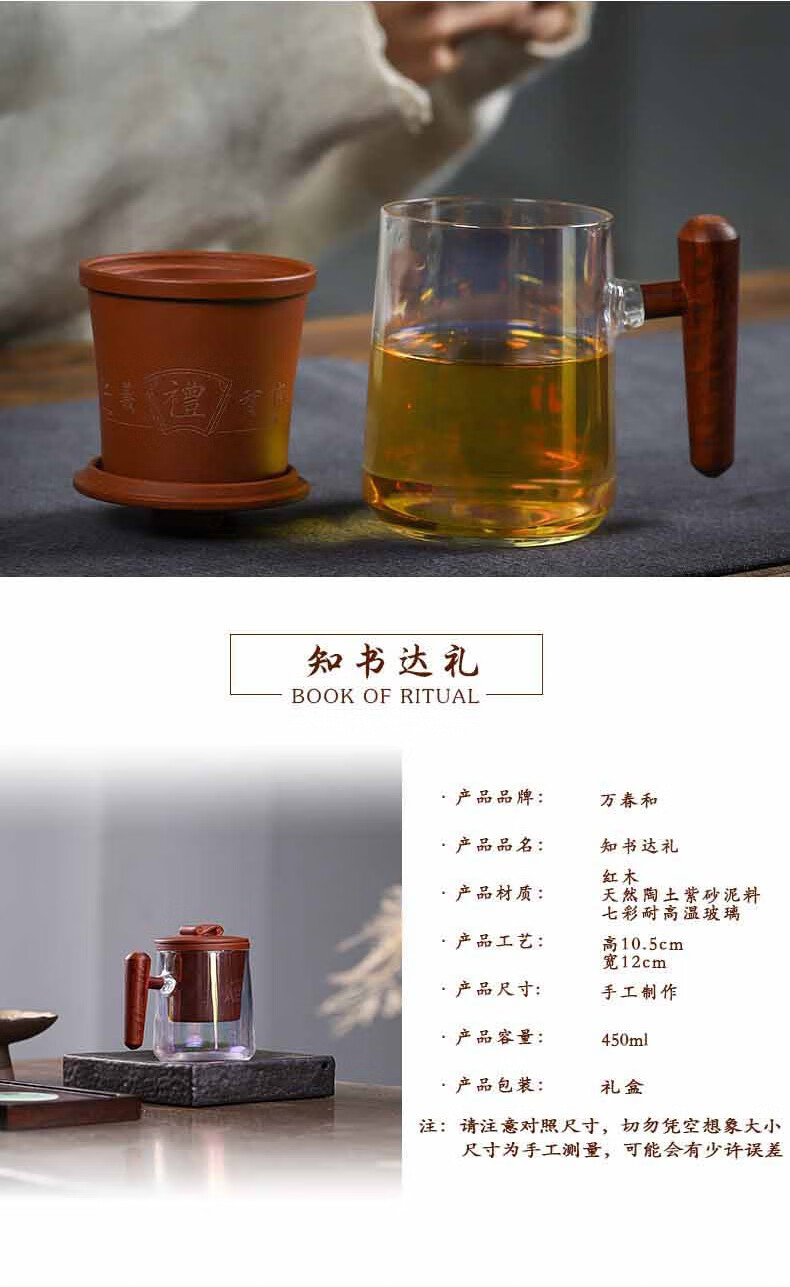 配置清单 :紫泥盖和过滤内胆各一个,木把玻璃杯一个,含手提袋锦盒包装