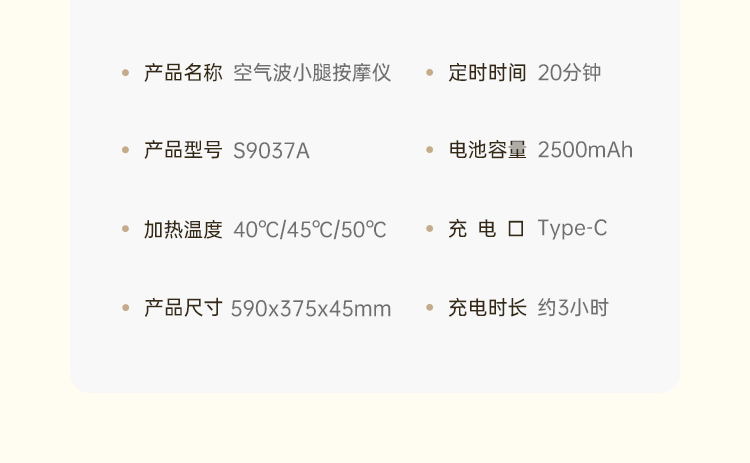 商品名称:喜来康 空气波无线小腿按摩仪 10W S9037A