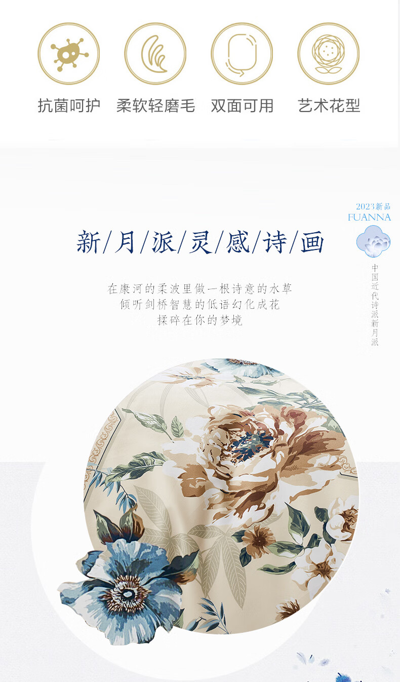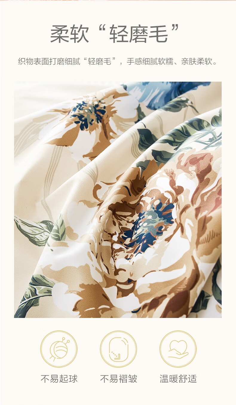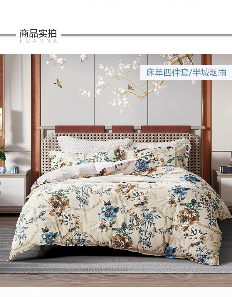 商品名称:富安娜 抗菌磨毛四件套-半城烟雨 被套203*229cm 2.5kg