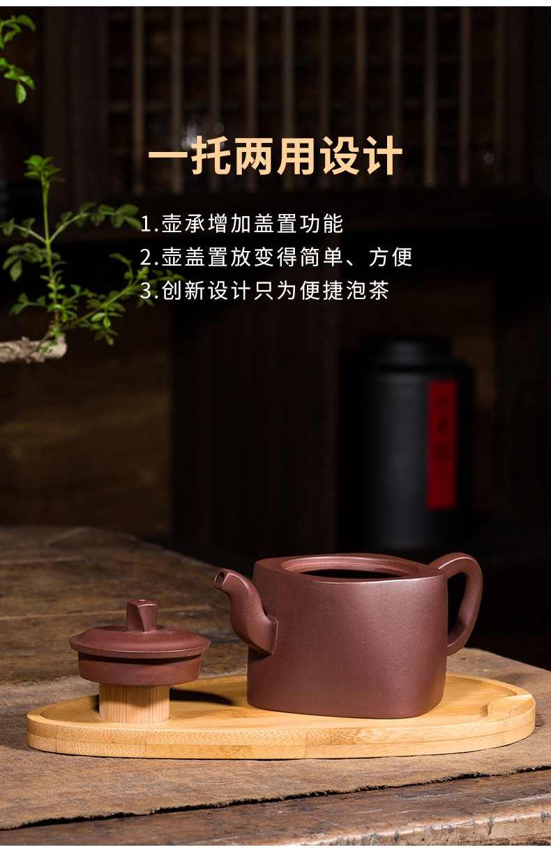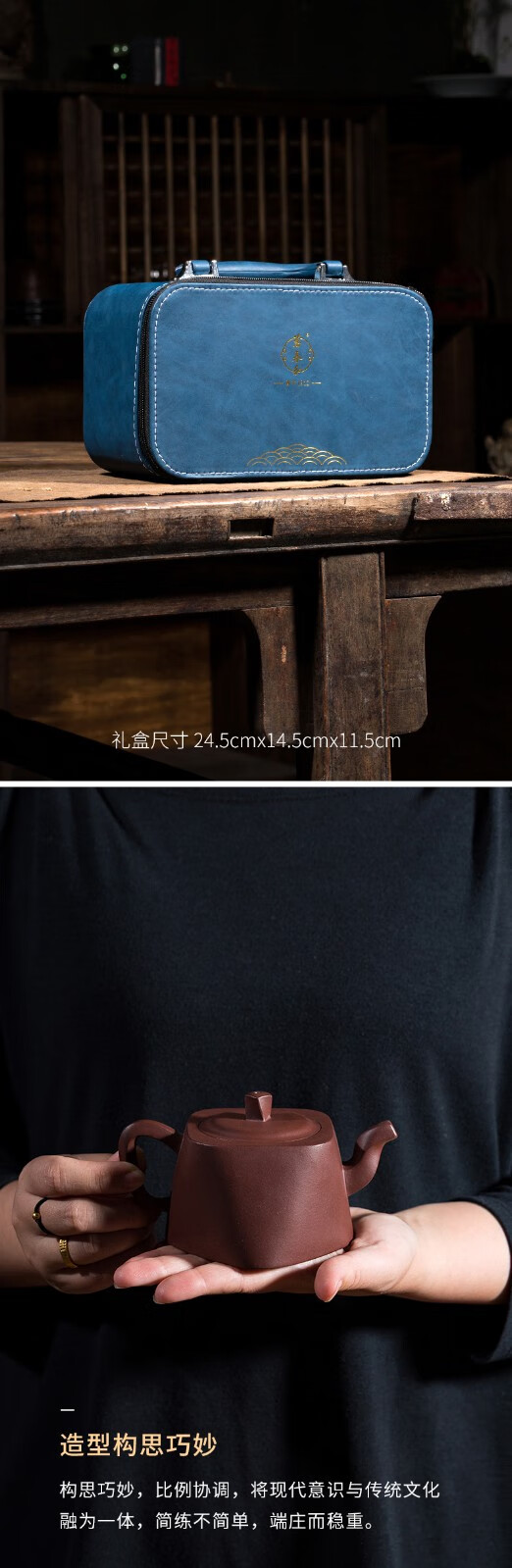 配置清单 :紫砂壶一个,含盖置壶竹托一套,含提手皮革包装