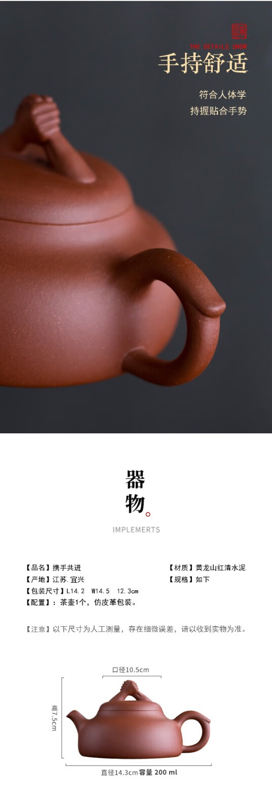 配置清单 :紫砂壶一个,含手提袋皮革包装