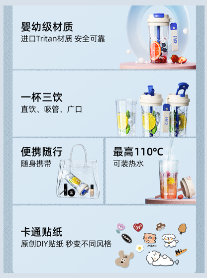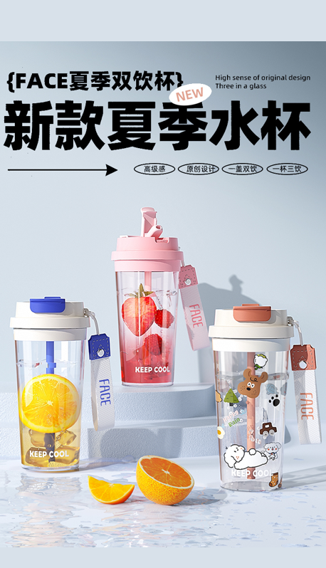 商品名称:FACE 双饮手提吸管杯 580ml FA-KP58E