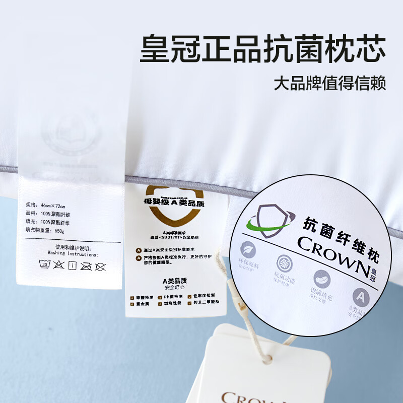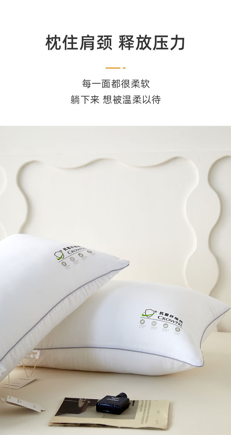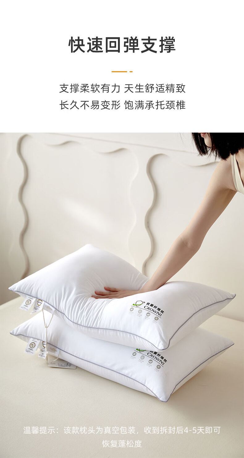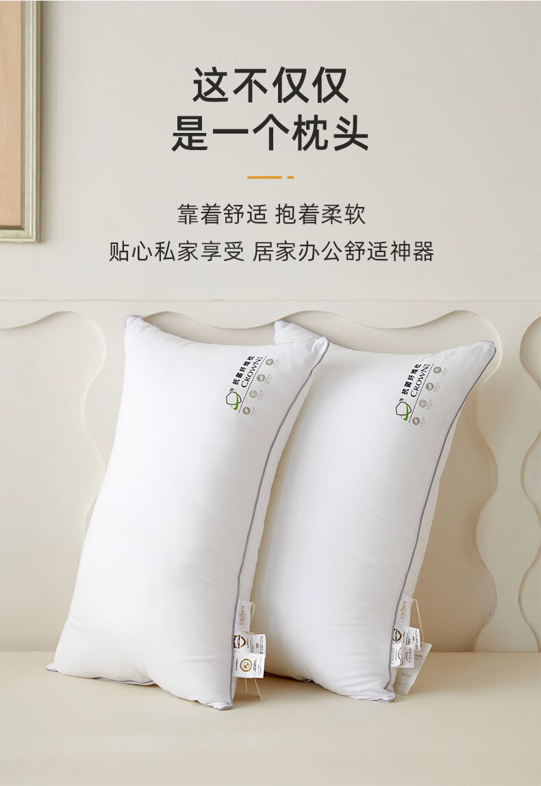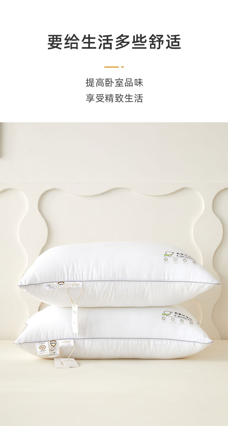 商品名称:皇冠 絮语抗菌枕芯(对枕)46cm*72cm T3509