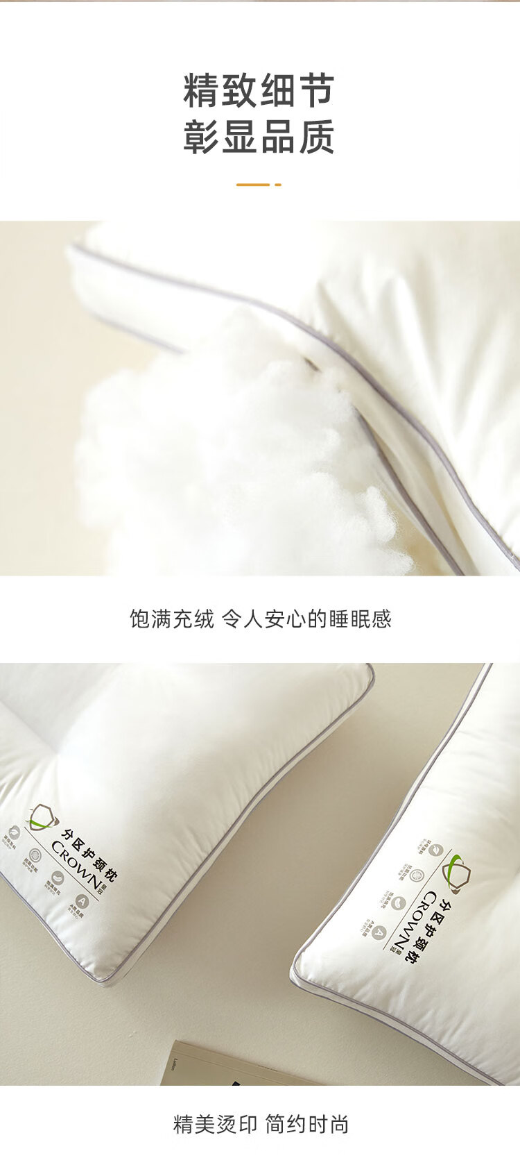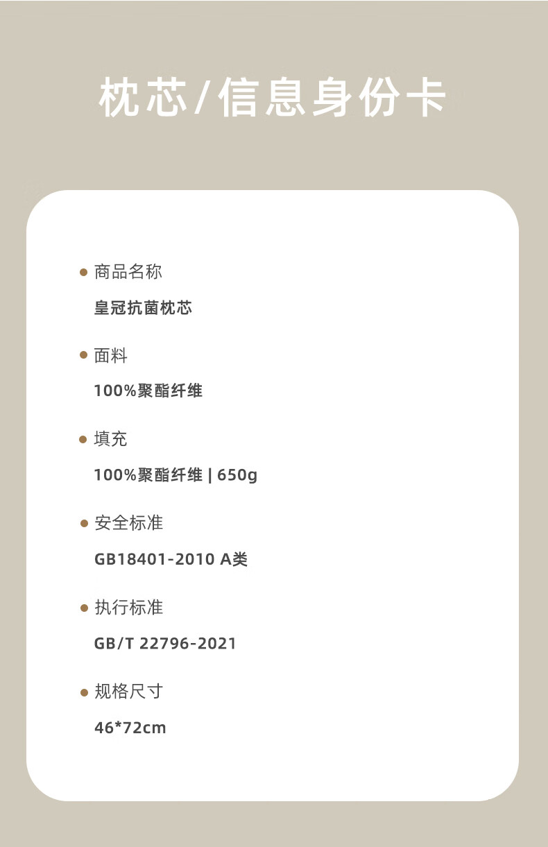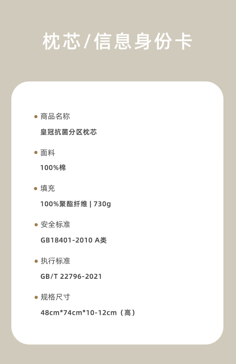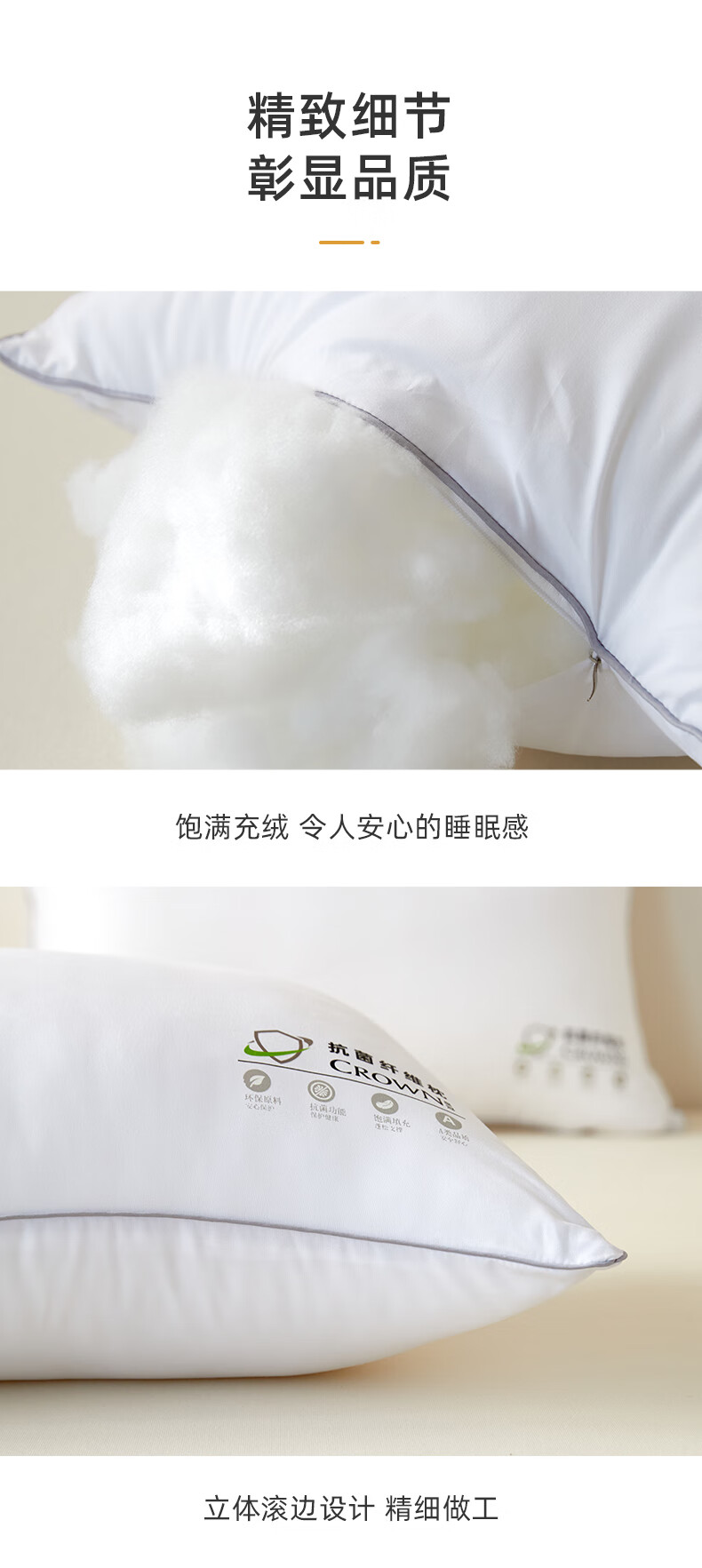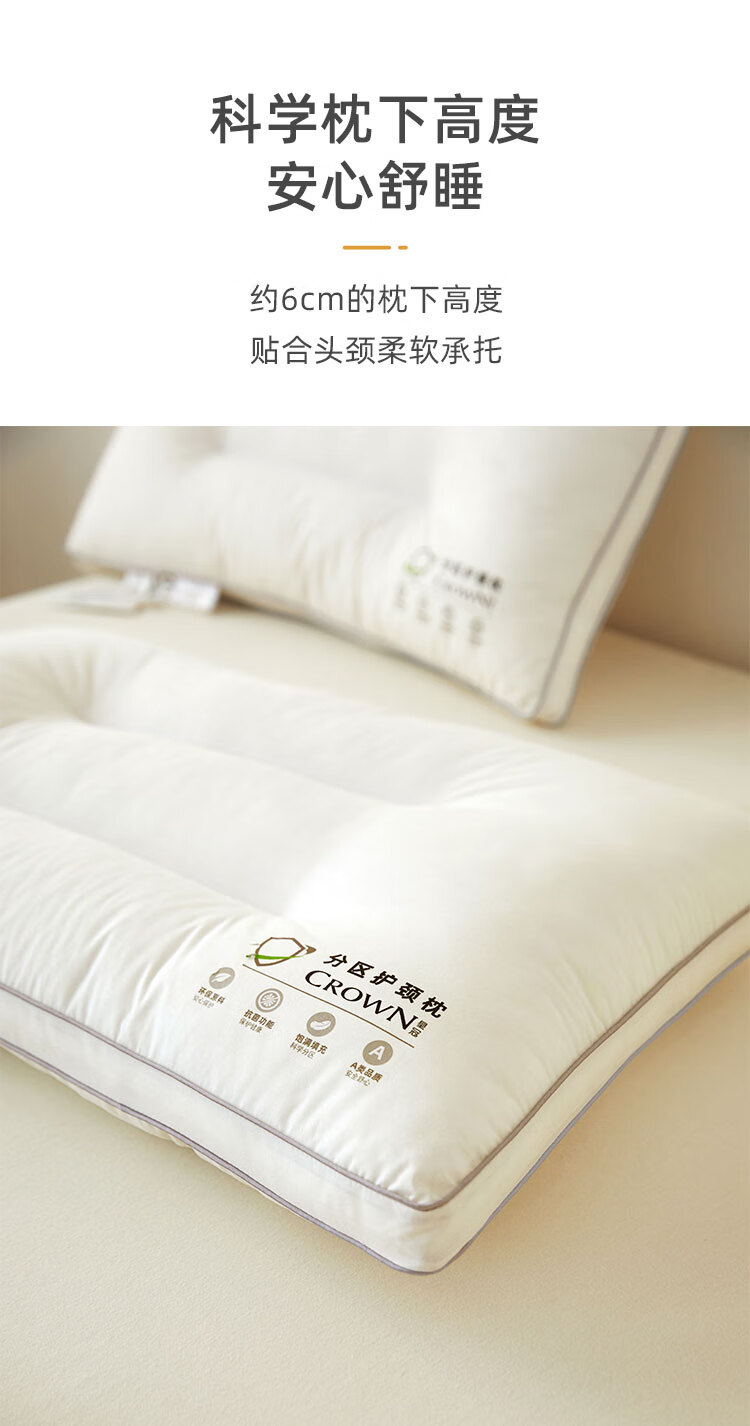 商品名称:皇冠 絮语抗菌枕芯(对枕)46cm*72cm T3509