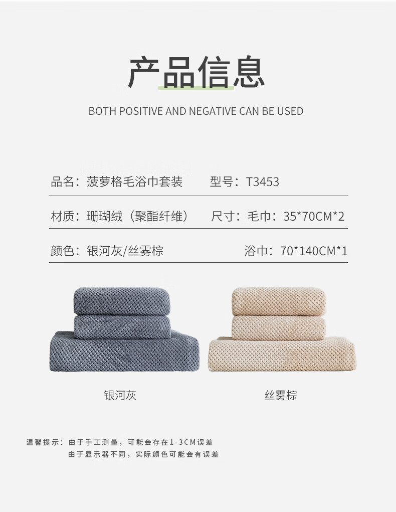 毛巾:35*70cm*2 浴巾:70*140cm*1