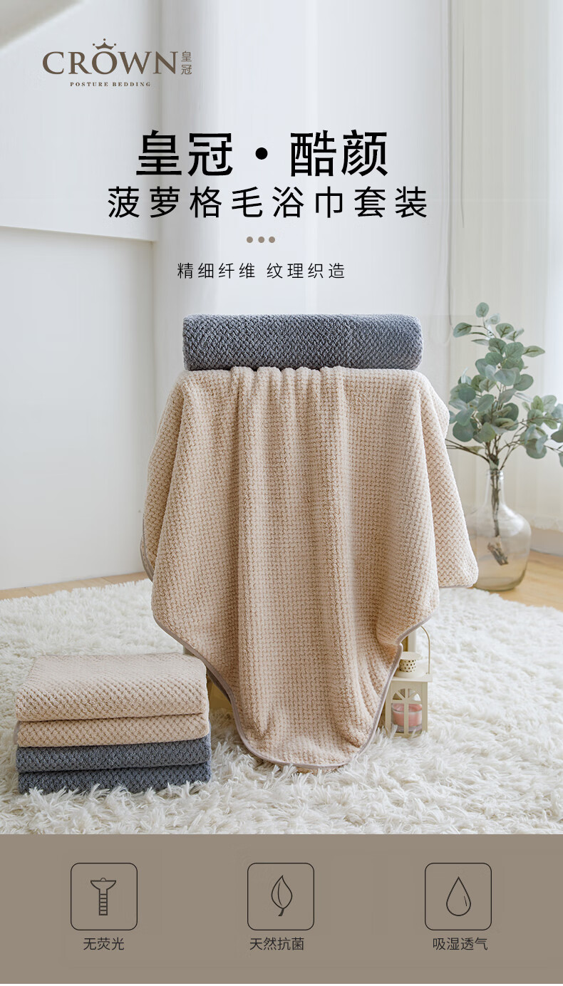皇冠 酷颜菠萝格毛浴巾套装 (毛巾:35*70cm*2 浴巾:70*140cm*1)T3453