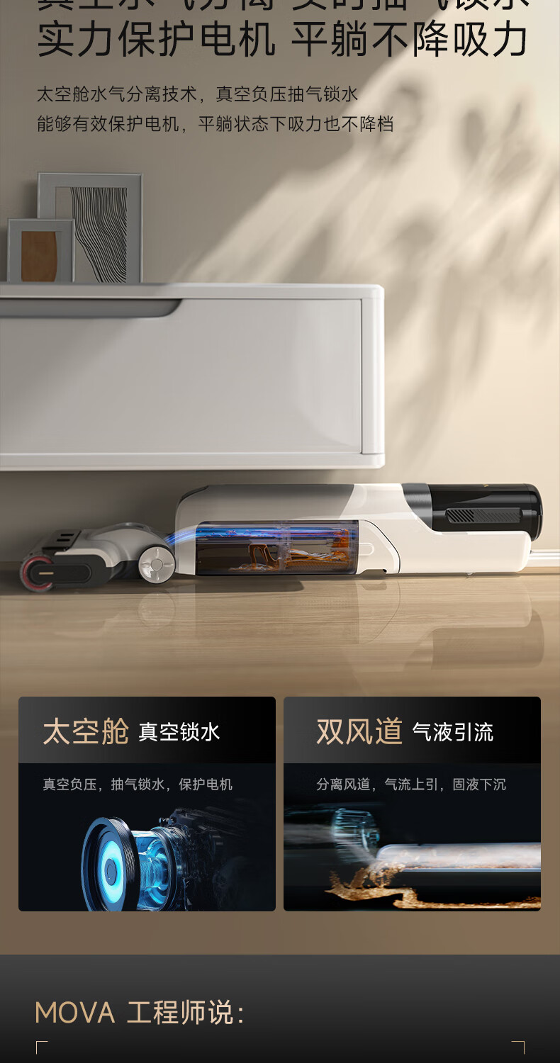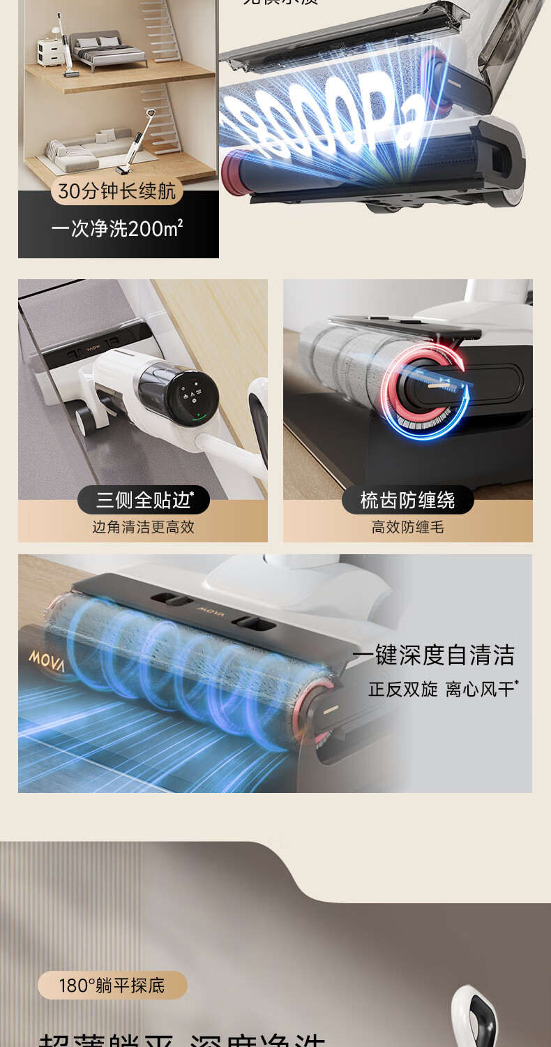 追觅 洗地机魔净大吸力0缠毛0水渍180°躺平洗地机吸拖洗地一体 MOVA4.0Pro