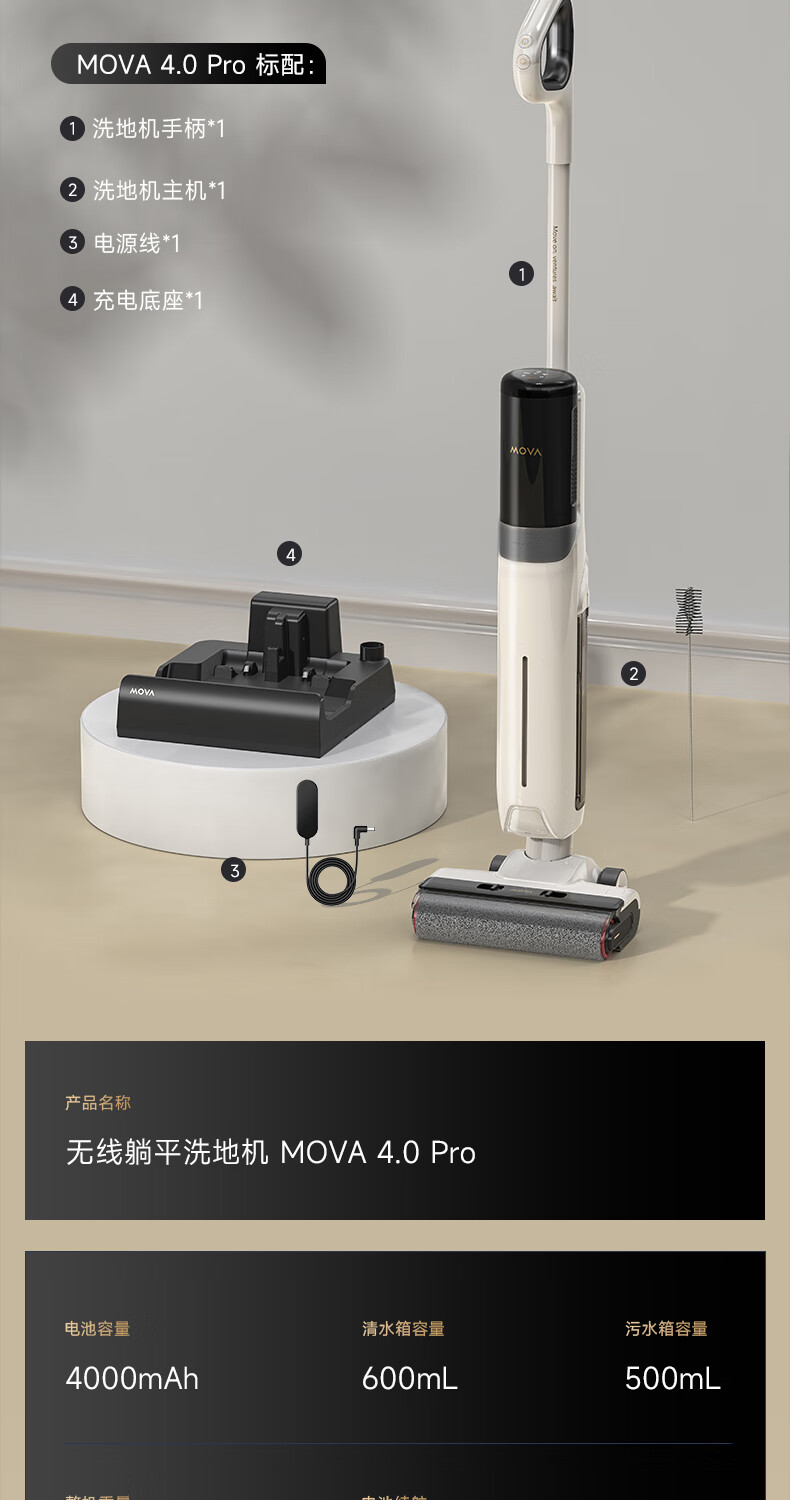 商品名称:追觅 洗地机魔净大吸力0缠毛0水渍180°躺平洗地机吸拖洗地一体 MOVA4.0Pro