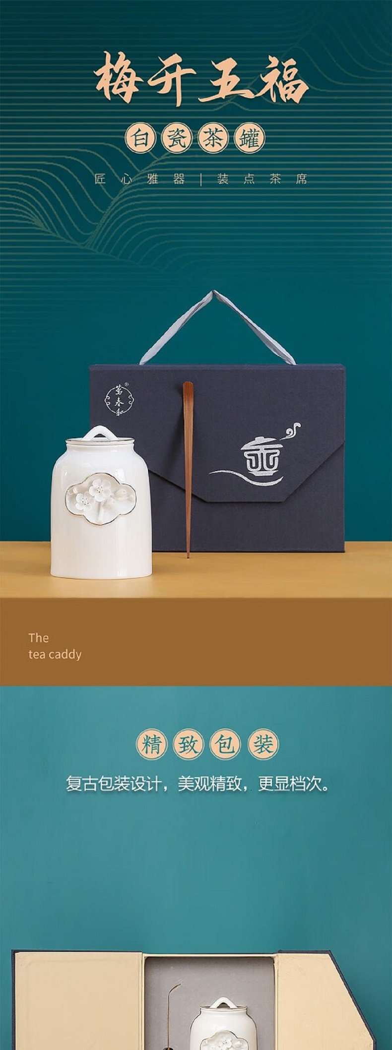 配置清单 :茶叶罐一个,茶匙一支,含提手锦盒包装。