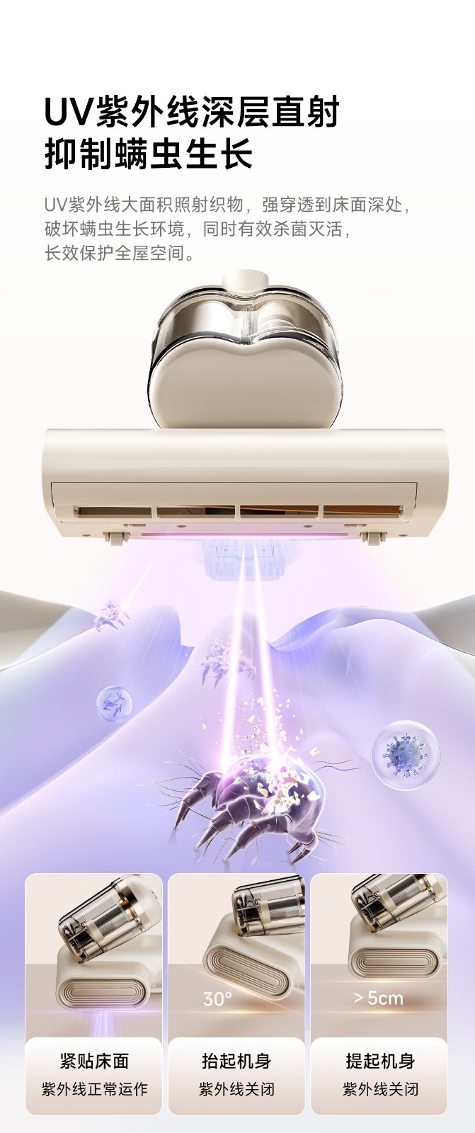 除螨方式 :超声波除螨 吸附除螨 紫外线除螨
