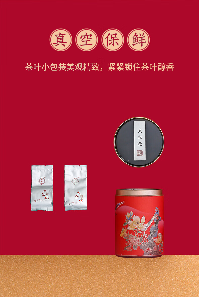 包装清单 :武夷山大红袍3罐(24泡、共168克),含手提袋彩盒包装