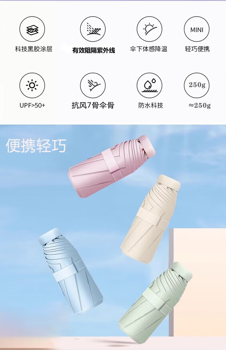 商品名称:天堂 五折晴雨遮阳伞 54CM*7K 50166EWHM