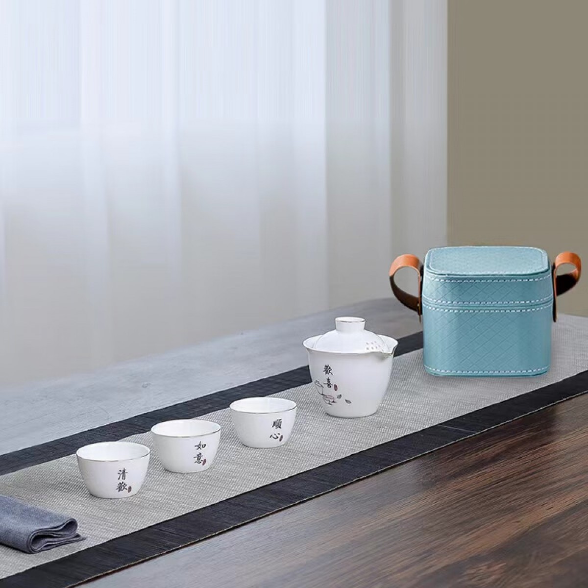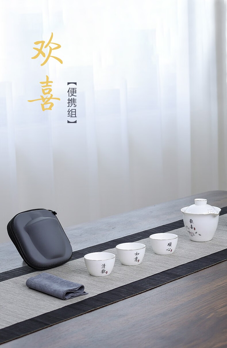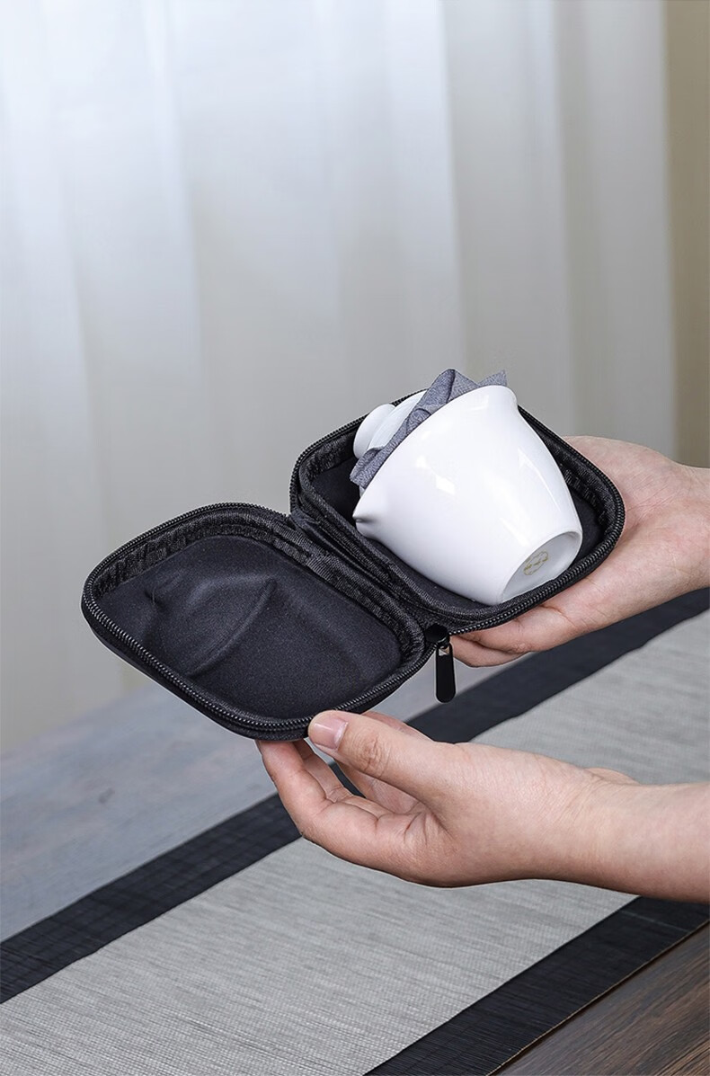 配置清单 :盖碗一个,茶杯三个,茶巾一条,EVA便携包