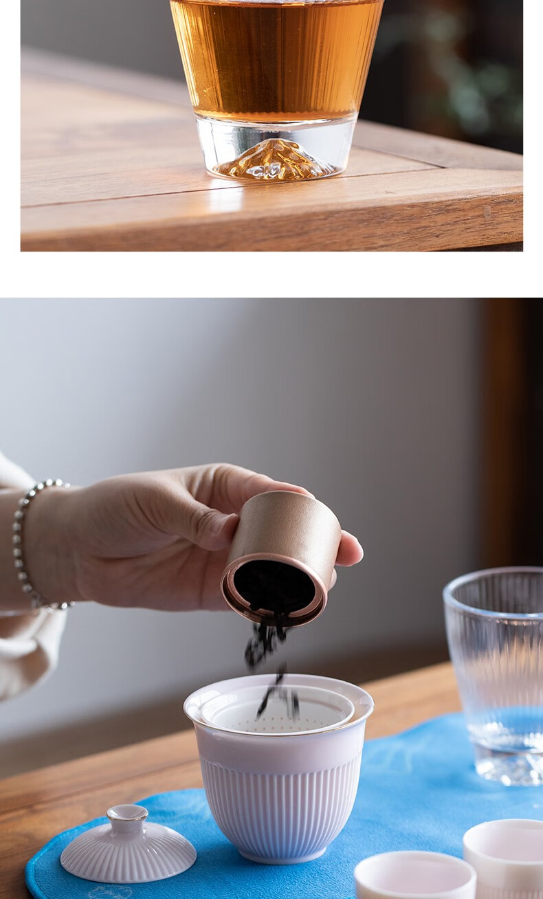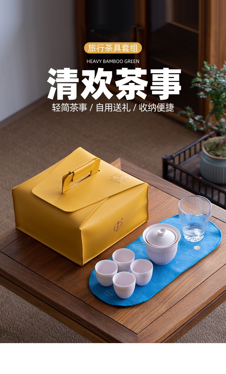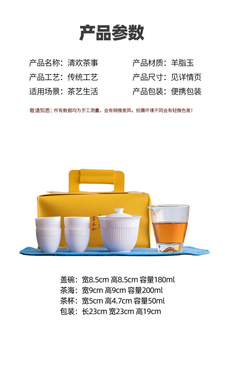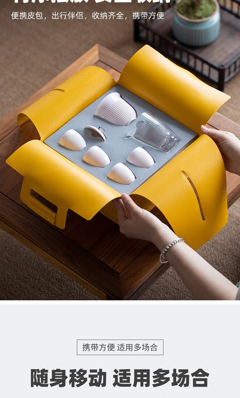配置清单 :茶壶、茶海各一个,茶杯四个,茶巾一条,含提手皮革包装