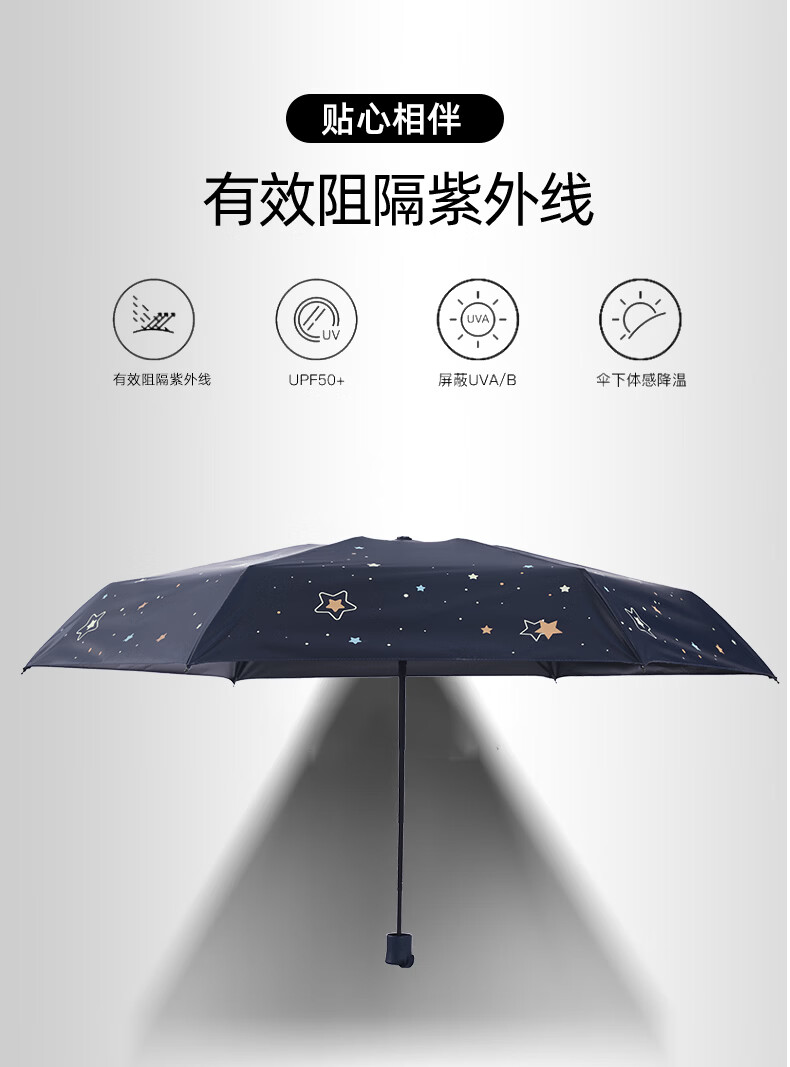 商品名称:天堂 五折太阳伞跃动星芒 52cm*6K 56308E