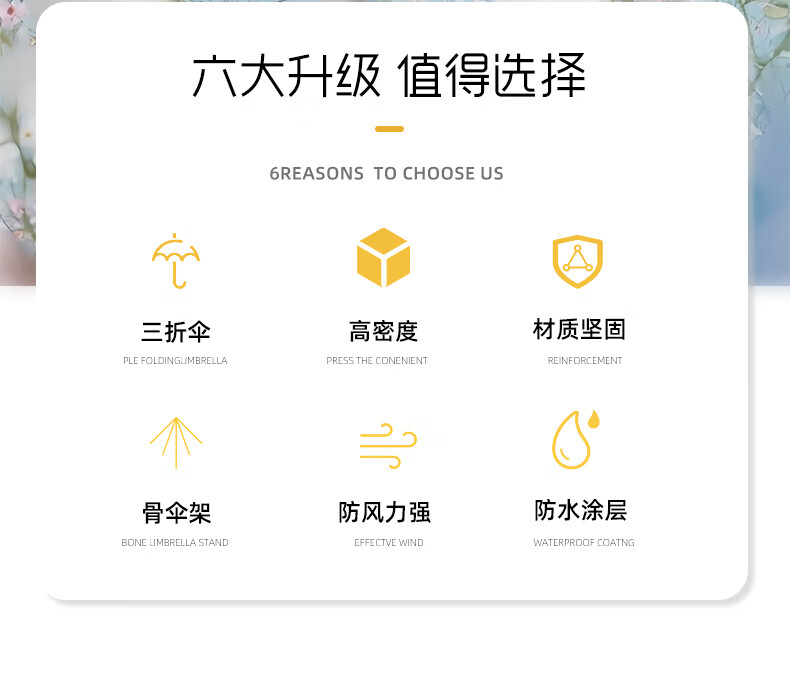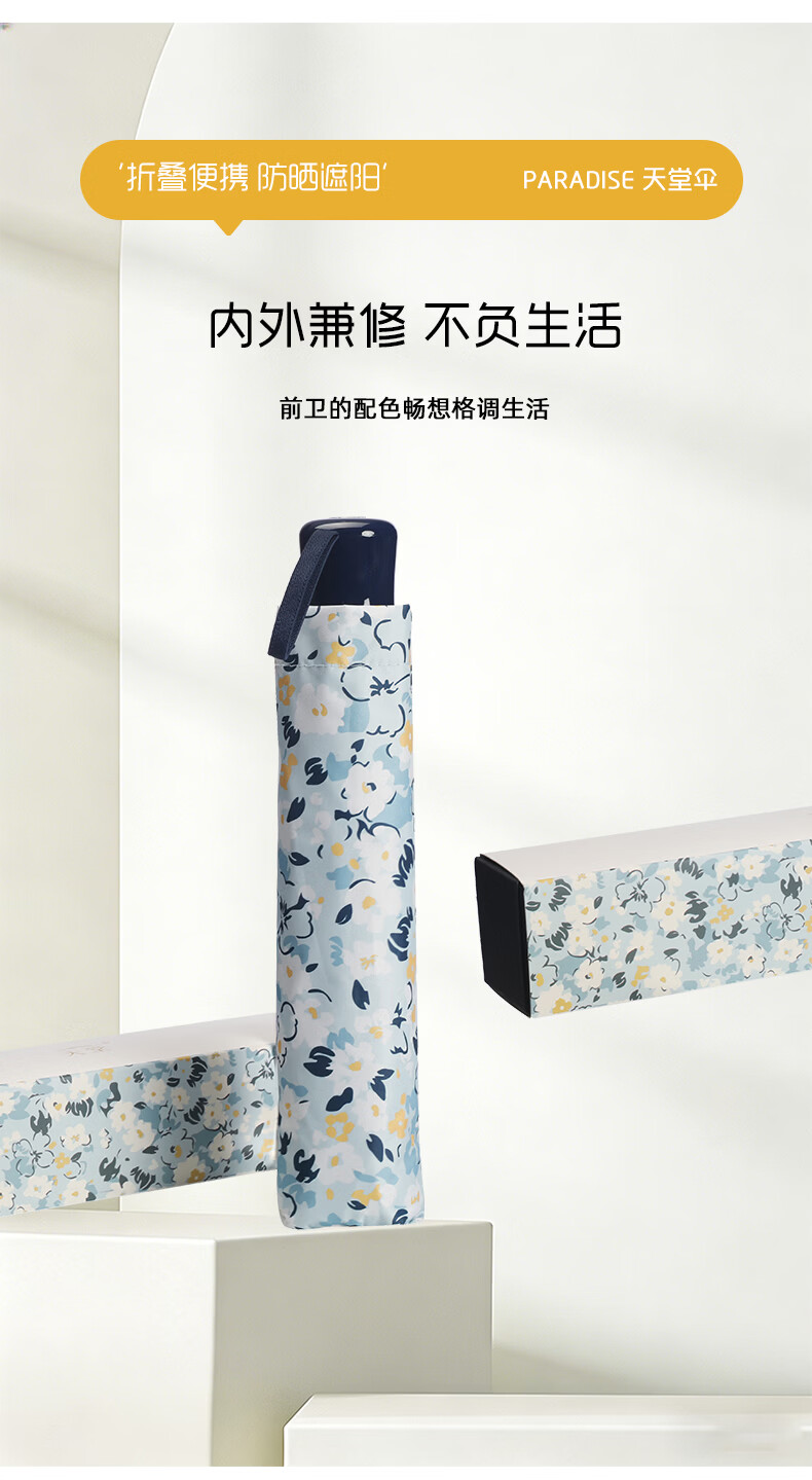 商品名称:天堂 五折晴雨太阳伞 54cm*6K 花间絮语 56316