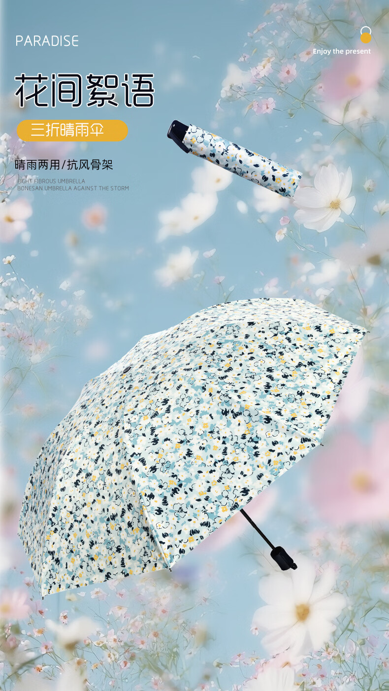 天堂 五折晴雨太阳伞 54cm*6K 花间絮语 56316
