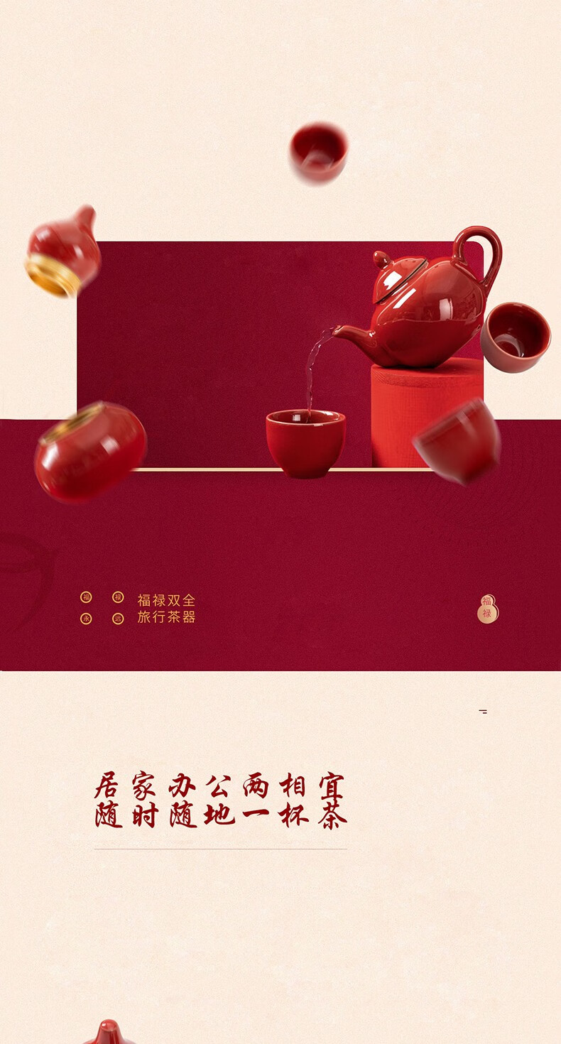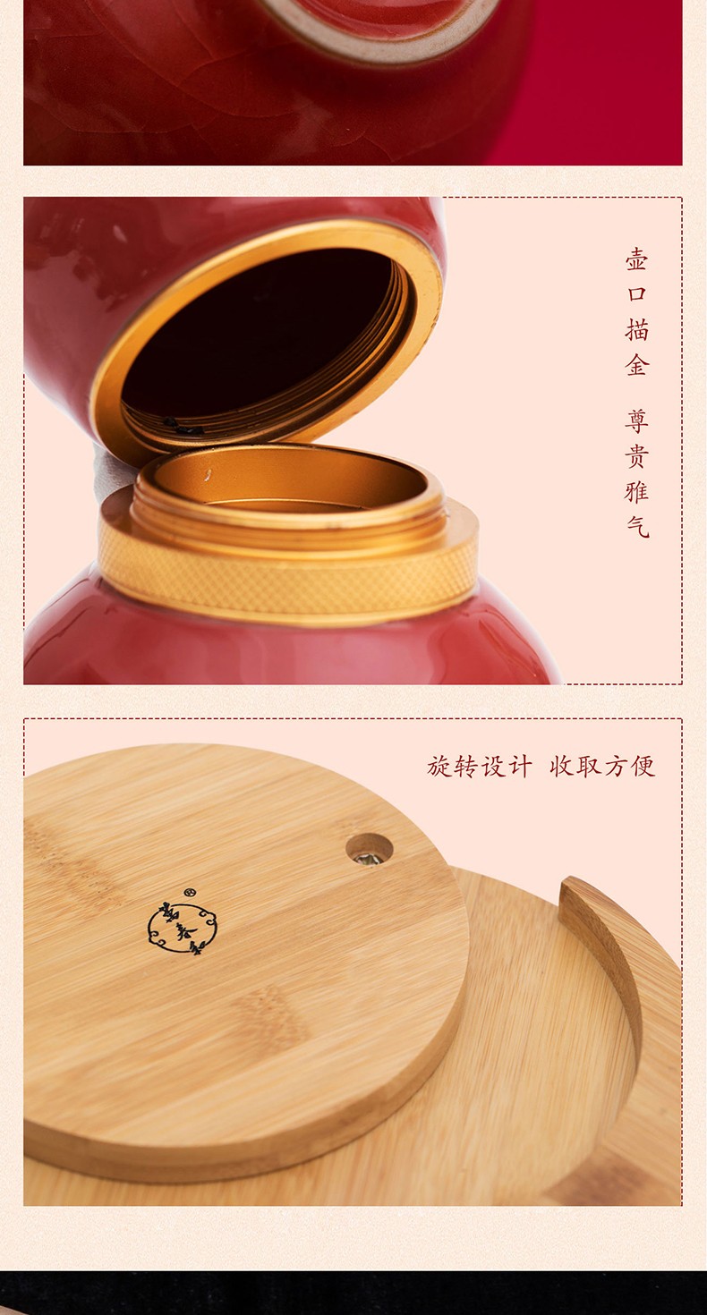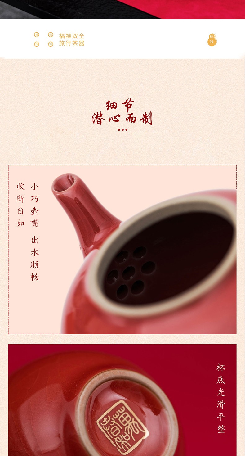 配置清单 :茶盘和茶壶各一个,茶杯四个,葫芦茶叶罐一个(含10克大红袍), 茶巾一条,EVA便携包装