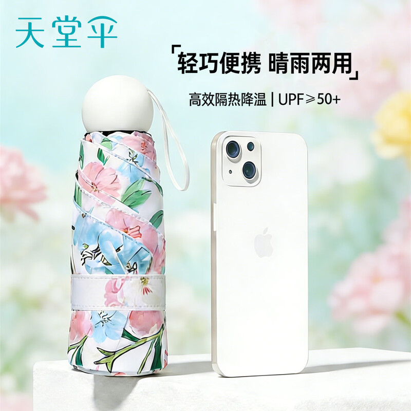 天堂 五折晴雨太阳伞 54cm*6K 花满枝 56319E