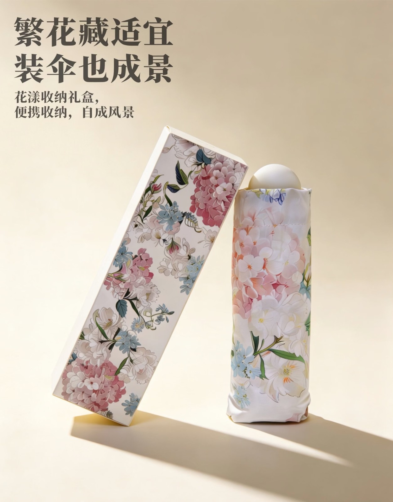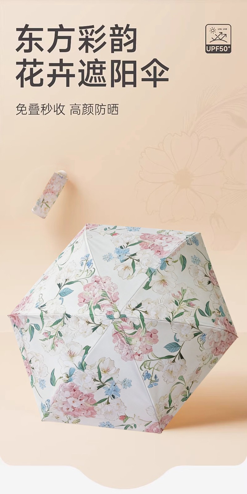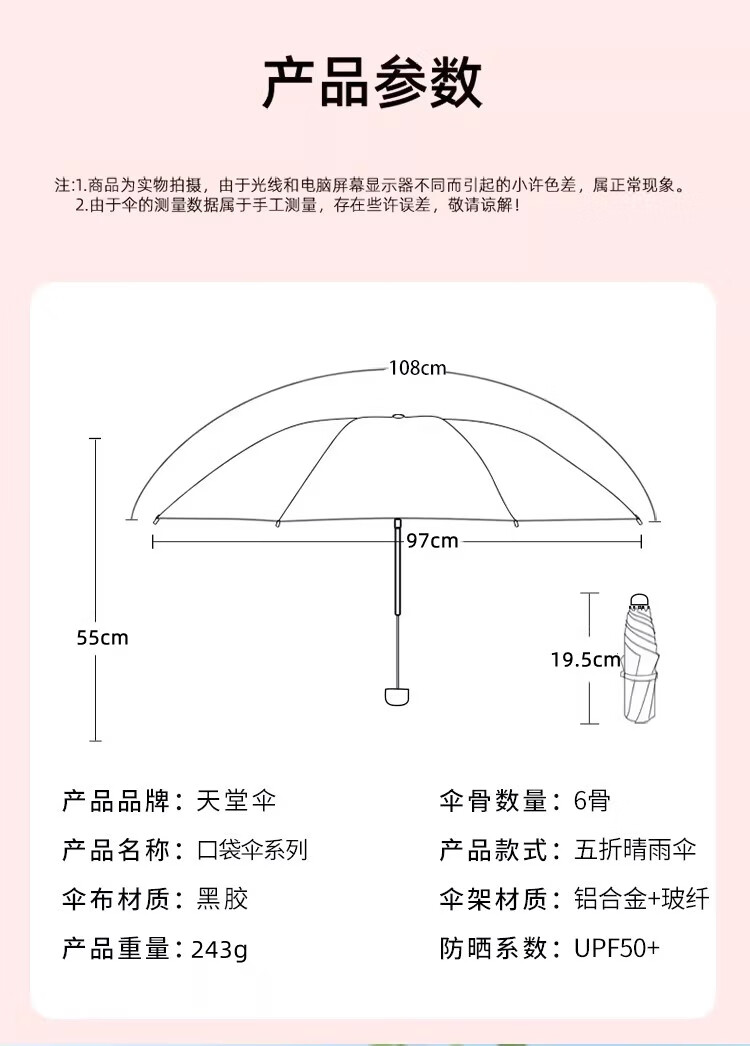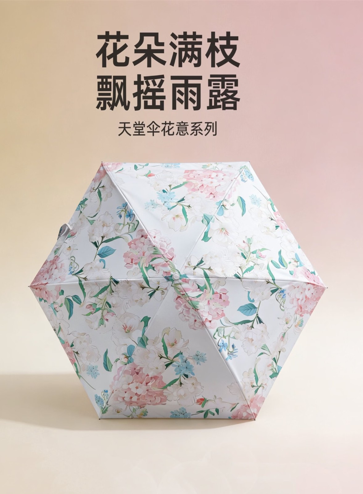 商品名称:天堂 五折晴雨太阳伞 54cm*6K 花满枝 56319E
